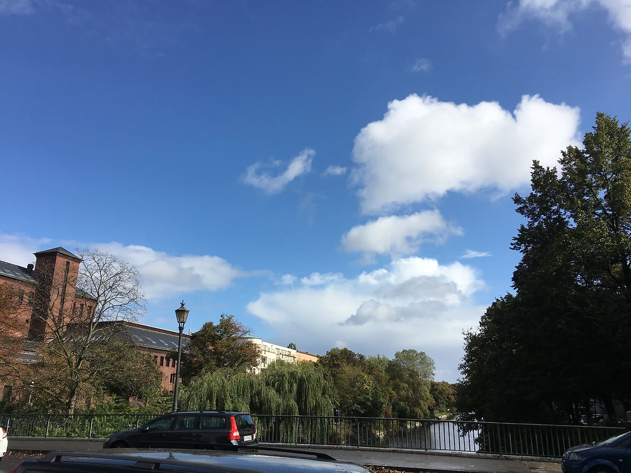 나무 한 번, 운하 한 번, 그리고 하늘 한 번. 힐끗 백조도 한 번.