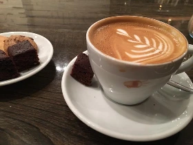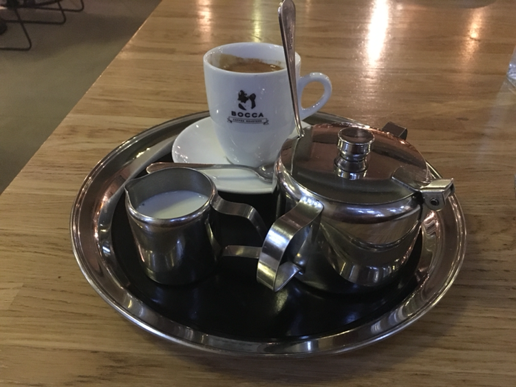 이른 아침 담 광장 산책 후, Hotel V의 레스토랑 The Lobby에서 아침을 먹으며 마셨던 커피
