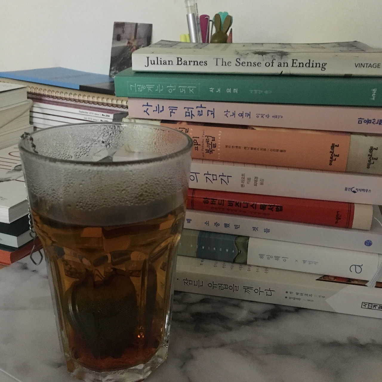비엔나 여행중 공수한 블렌디드 아쌈티를 우려 내고, 손길과 마음길 탄 책을 몇몇 쌓아 본다.