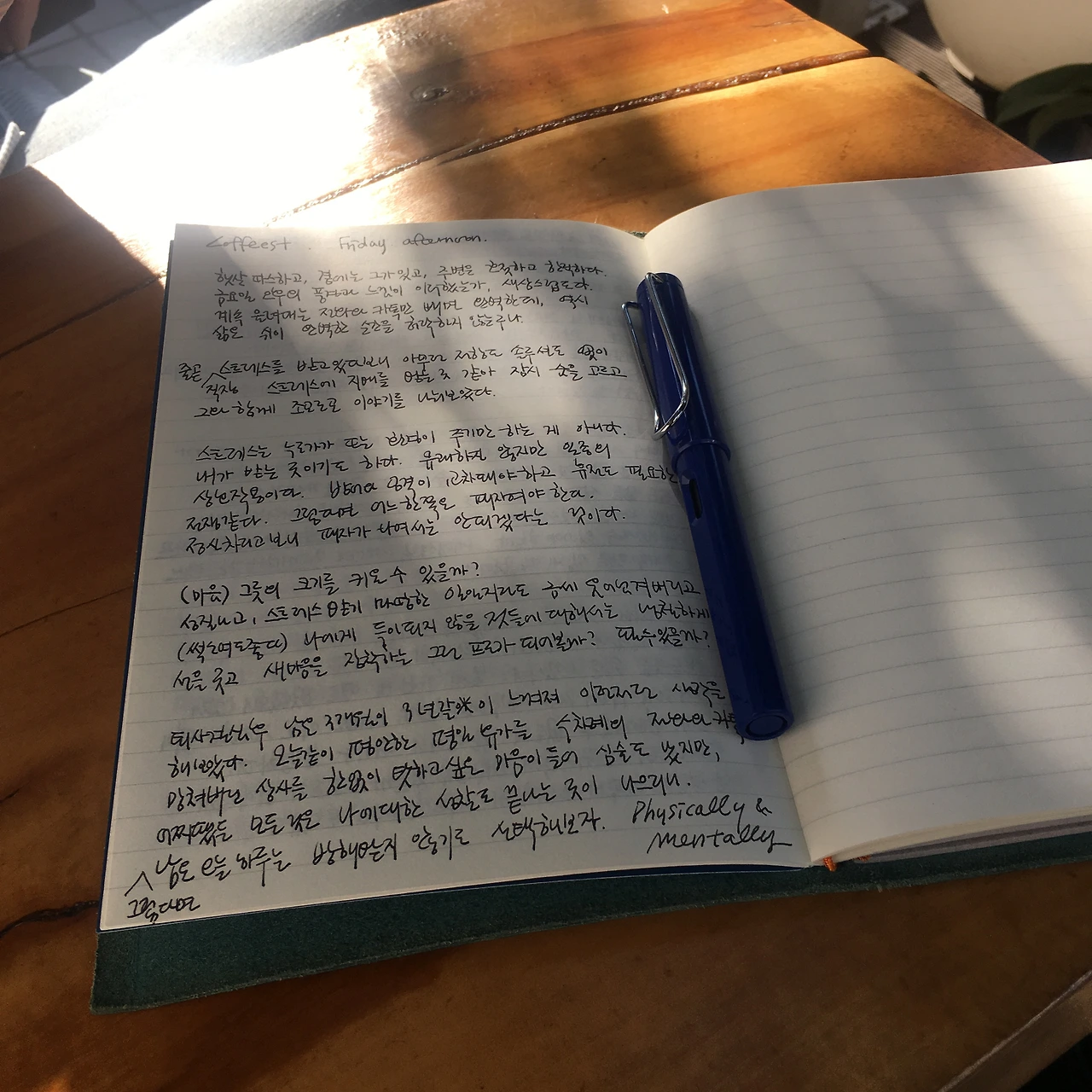 오늘 같이 평안한 평일 휴가를 수차례의 전화와 카톡으로 망쳐버린 상사를 한없이 탓하고 싶은 마음이 들어 심술도 났지만, 어찌됐든 모든 것은 나에 대한 성찰로 끝나는 것이 나으리니. 그렇다면 남은 오늘 하루는 방해받지 않기로 선택해보자. Physically and mentally.