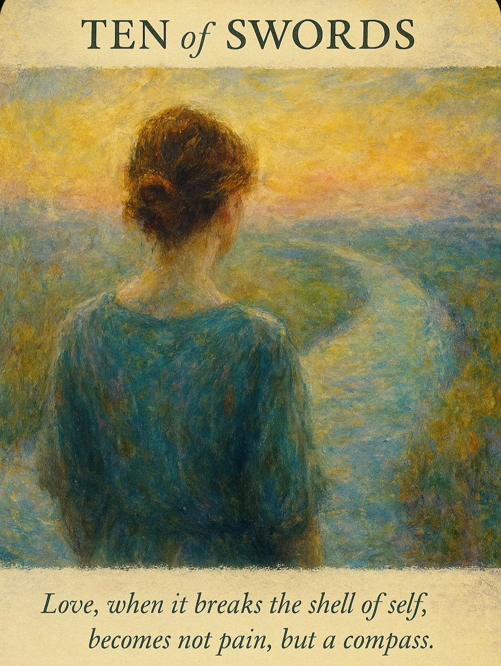 타로 카드 위에 놓인 "Choose a New Direction"이라는 메세지는