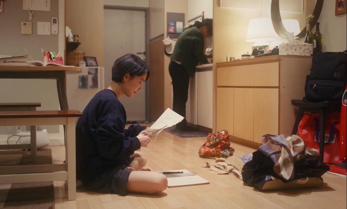 형숙은 딸의 자취방에 얹혀사는 민진의 첫인상이 마음에 들지 않지만, 어색함을 풀어나가려는 민진의 노력에 대화를 이어나간다. 민진은 자신이 현서의 애인인 것을 들킬까 봐 노심초사한다. 삐거덕거리는 자취방 속 의자처럼, 뚜껑이 맞지 않는 반찬통처럼. 뻣뻣한 둘의 관계는 민진이 영어를 가르쳐주면서 서서히 풀려간다. 자취방 바닥에 마주 보고 앉은 두 사람, 둘의 영어 이름인 샐리와 오드리가 나란히 적힌 공책은 동등한 시선을 제시하고, 인물과 인물의 만남 그 자체를 집중하게 한다.