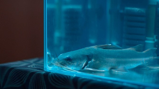 영화의 초반부부터 등장하는 나레이션의 주인공이자 관찰자는 병원에 살고 있는 메기다. 작은 어항 속에서 “가만히 있어주는”것으로 윤영을 위로하는 메기는 엑스레이실 사진의 주인공이 누구인지, 윤영이 어째서 혼란스러워하는지 꿰뚫고 있다. 믿음, 오해, 의심이 전복되는 영화에서 유일하게 객관성을 갖고 있는 캐릭터이기도 하다. 영화를 보고 있는 관객은 메기의 목소리를 듣고 상황을 해석하며 극중 “메기”의 캐릭터와 비슷한 위치에 선다. 메기는 윤영과 성환처럼 연인 관계이지도, 직장 상사이지도, 혹은 피해자이지도 않은 철저한 제 3자이기 때문에 객관적 서술이 가능하다. 관계로부터 벗어난 존재는 영화의 흐름이 엇나가지 않도록 붙잡는다. 윤영은 성환의 이중성을 알게 된 후 더 자주 메기를 찾는다. 그는 미동 없는 메기의 움직임을 관찰하며 이름을 부른다. 어항 밑바닥에 납작하게 엎드려 고요한 움직임으로 입을 뻐끔거리는 메기는 갈피를 잡을 수 없는 윤영과 상반된다. 윤영은 메기의 이름을 부를 때 생활 속에서 놓지 못하는 불안을 잠시 거둔다.
