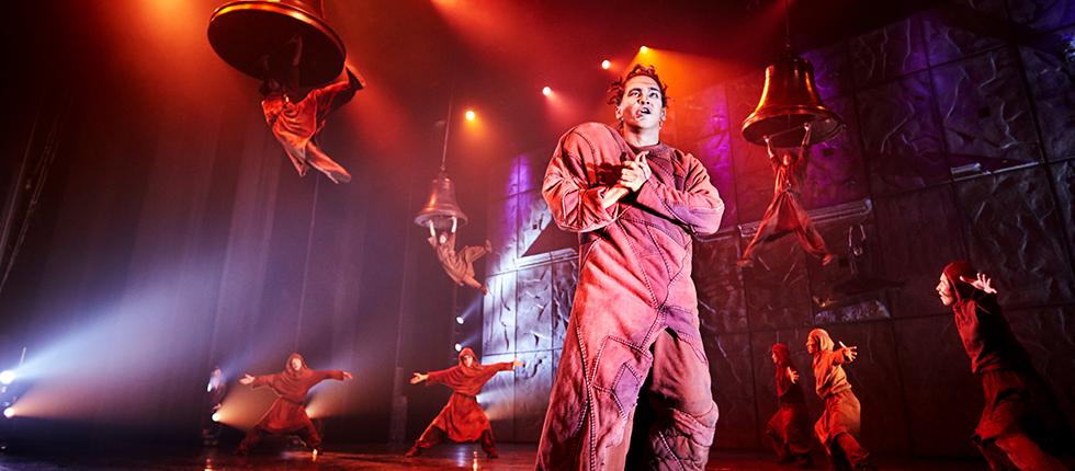이야기의 막이 오르기 전, 뮤지컬 무대는 삭막하다. 성벽을 연상시키는 투박한 벽과 묵직한 가고일 석상, 대형 종 모형이 무대 중간 등장하지만, 그 이상으로 화려한 연출을 선보이지 않는다. 뮤지컬 <노틀담 드 파리>는 거창한 무대 장치 없이 인간의 무용으로 극적인 분위기를 연출한다. 대형 무대 벽을 오르내리며 움직이는 아크로바틱 무용가들은 격동의 분위기를 표현해낸다.