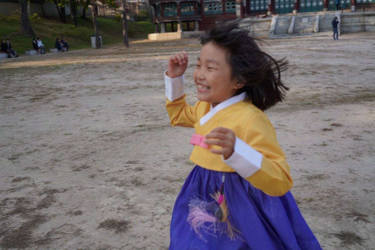 딱딱한 아스팔트와 보도블록으로 메워진 땅을 밟는 것이 익숙한 아이들에게, 위생에 좋지 않다며 놀이터의 한 뼘 모래땅마저 빼앗긴 아이들에게, 흙바닥이 그것도 이렇게나 어마어마하게 넓은 마당이 원 없이 주어지는 곳이니 그럴 만도 하다. 고궁관리소에서 들으면 기함을 하겠으나 고궁을 즐기려고 들어섰다면 일단 냅다 달리고 볼 일이다.
