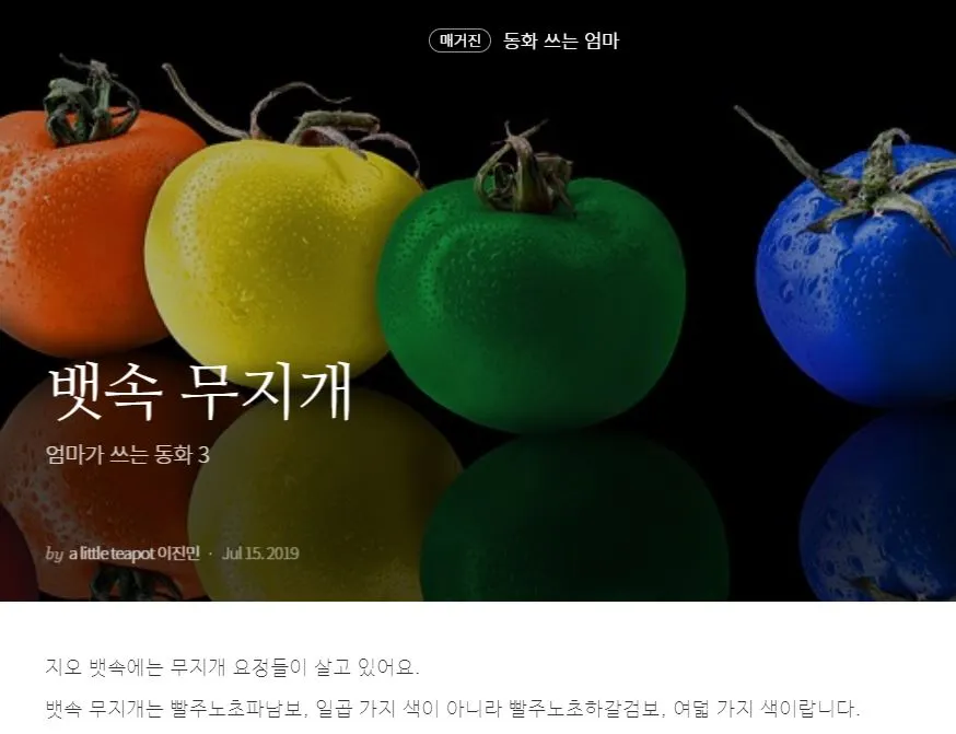 유럽에 사시는 분들은 아시겠지만, 독일에 이사 와서 집에 인터넷을 설치하는데 수개월이 걸렸어요. 당시 저는 미술 작품으로 철학을 풀어내는 이야기를 한참 쓰고 있었거든요. 그림과 조각들을 살펴보며 이야기를 해야 하니 인터넷 검색이 꼭 필요했는데, 못 쓰게 되니 한과 창작 욕구가 지옥불마냥 용솟음쳐서... 그래서 인터넷 검색 없이 쓸 수 있는 글이라도 써 보자 싶어서 제 아이들에게 들려줄 이야기를 몇 편 쓰기 시작했어요. 외국에 살고 있으니 한글로 된 이야기를 접하기가 상대적으로 어려울 것 같아서요.