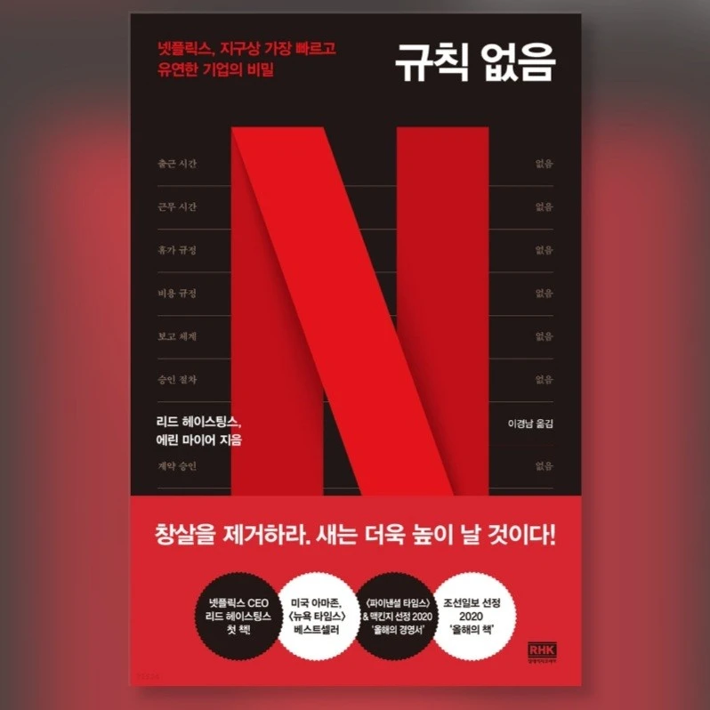 1997년에 설립한 넷플릭스(Netflix)는 영화 스트리밍 서비스와 주문형 콘텐츠 제작을 사업모델로 가지고 있는 큰 회사입니다.이 회사가 지난 20년간 엄청난 성장을 달성한 비결이 지구상에서 가장 빠르고 유연한 기업이기 때문이라는데, 어떻게 이런 기업문화를 만들고 계속 유지할 수 있는지가 경이롭고, 이러한 특별한 기업문화를 갖게 만든 창업자 리드 헤이스팅스의 존재감이 대단합니다.