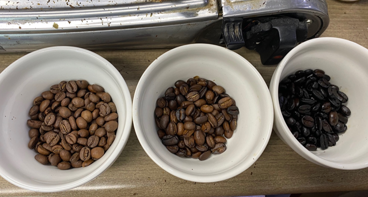 그래도 우린 즐겁다. 내 눈앞에서 원두의 변화를 생생하게 볼 수 있으니 말이다. 체프가 날리고 콩이 익으며 딱딱!하고 크랙 소리가 난다. 오일도 나기 시작했다.