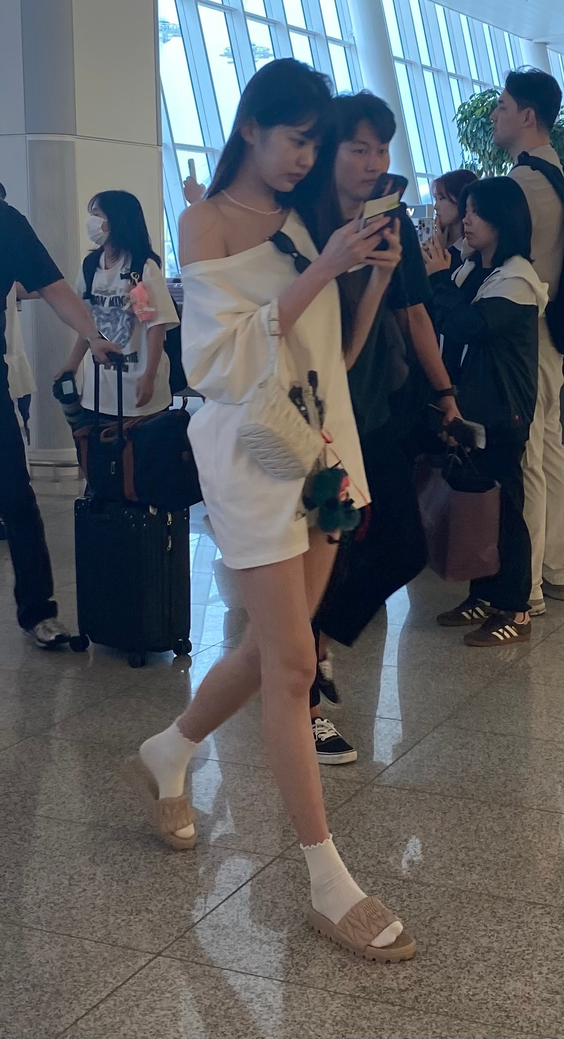 그러면서 나는 가장 눈이 부시는 사람을 계속 쳐다보았는데, 아무리 봐도 어디서 많이 본 얼굴이다. ‘누구지? 왜 이렇게 낯이 익지?’ 하는데 내 입에서 “저 사람은 장원영이야.”라는 소리가 나왔다. 나도 스스로 놀라서 “뿅뿅아, 저기 장원영인 것 같아.”라고 딸에게 말했다. 뿅뿅이는 “엄마, 아니야. 장원영 아니야.”라고 단호하게 쏘아붙인다. 순간 자신감을 잃은 나는 다시 살펴보았는데 장원영이 정말 맞았다. 그 순간 장원영과 아이브 멤버들이 벤치에서 몸을 일으켜 세워 차례차례 걸어서 우리 바로 옆으로 지나갔다. 1m도 안 되는, 한 걸음 정도의 거리에 아이브 멤버들이 스쳐갔다. 나는 순발력을 발휘하여 휴대폰으로 사진을 찍었고, 딸은 얼어붙어서 아무 말도 하지 못하고 멍하게 쳐다보고 있었다.