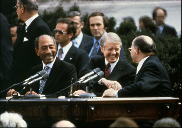 1979년 카터 미 대통령이 중재한 캠프 데이비스 협정에서 역사적인 이집트-이스라엘 평화협정이 이루어집니다. 13일간 진행된 이 협정에서 이집트는 미국으로부터의 연 20억 불의 원조와 시나이 반도를 돌려받게 됩니다.