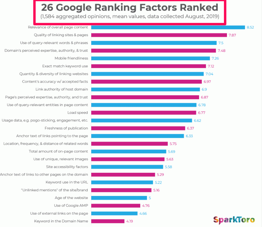 웹사이트 속도: 한국은 인터넷이 세상에서 가장 빠른 편에 속하기 때문에 우리는 잘 겪지 못하지만 유럽만 가도 우리만큼 속도가 나오지 않는다. 페이지 로딩에 시간이 오래 걸리면 그만큼 이탈률이 많고 최적화되지 않았다고 구글은 판단한다. 기술적인 속도를 떠나서 페이지내 최적화되지 않은 이미지, 과도한 플래시 사용, 비디오 소스, 지나치게 복잡한 UX등 역시 로딩 속도를 떨어지게 하는 주요 요인들이다.