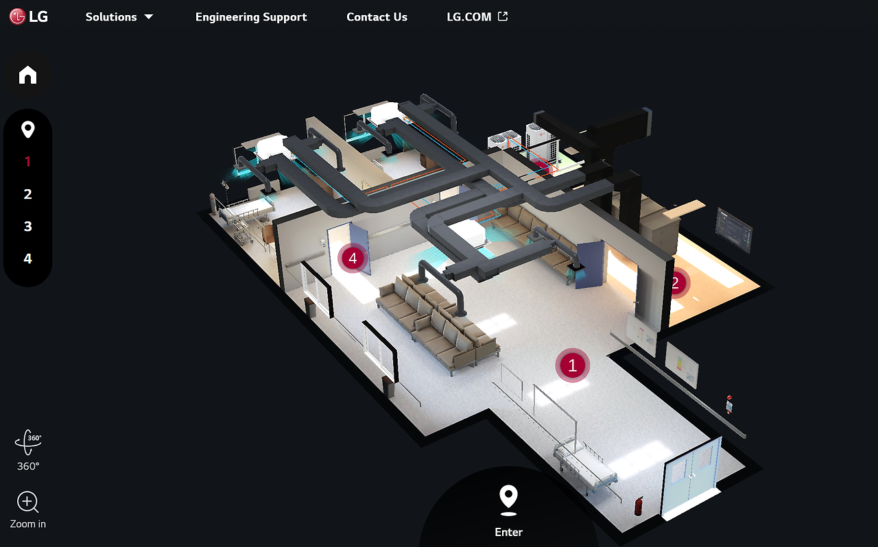 상업용 에어컨 시장을 리드하는 LG전자는 고객이 원하는 공간별 공조솔루션을 보다 쉽게 이해할 수 있도록 3D 가상 쇼룸을 구축했다. 상업용 에어컨은 가정용과 다르게 공간별 다양한 제품과 솔루션이 있고 설치도 복잡하다.