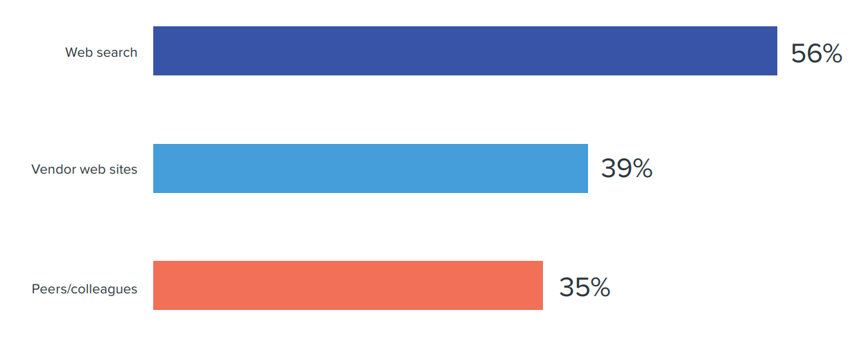 또한 구매 시 정보를 얻기 위해 가장 많이 이용하는 곳을 묻는 질문에 웹 검색과 공급업체 웹사이트, 주변 지인의 순으로 답했다.