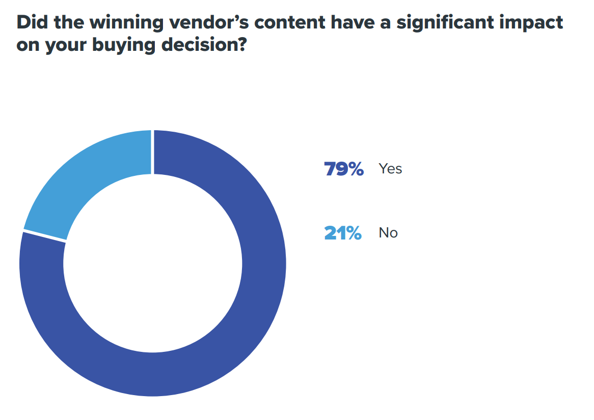 일찍이 빌게이츠는 “인터넷 세상에서는 콘텐츠가 돈을 벌어다 줄 것”이라고 강조했고, “보라빛 소가 온다”로 유명한 마케터 세스 고딘도 “콘텐츠 마케팅만이 유일하게 남은 마케팅이다”라며 콘텐츠의 중요성을 역설했다. Webtrends Inc의 발표에 따르면 포춘 100대 기업 중 70% 기업 웹사이트의 트래픽이 감소했고, 90%의 트래픽이 10%의 콘텐츠에서 발생했다고 한다. 또한 B2B마케팅 전문 리서치 기관인 Demand Gen Report의 ’21년 B2B바이어 조사에 따르면 응답자의 80%가 공급업체의 콘텐츠가 구매 결정에 긍정적이고 상당한 영향을 미쳤다고 답했다.