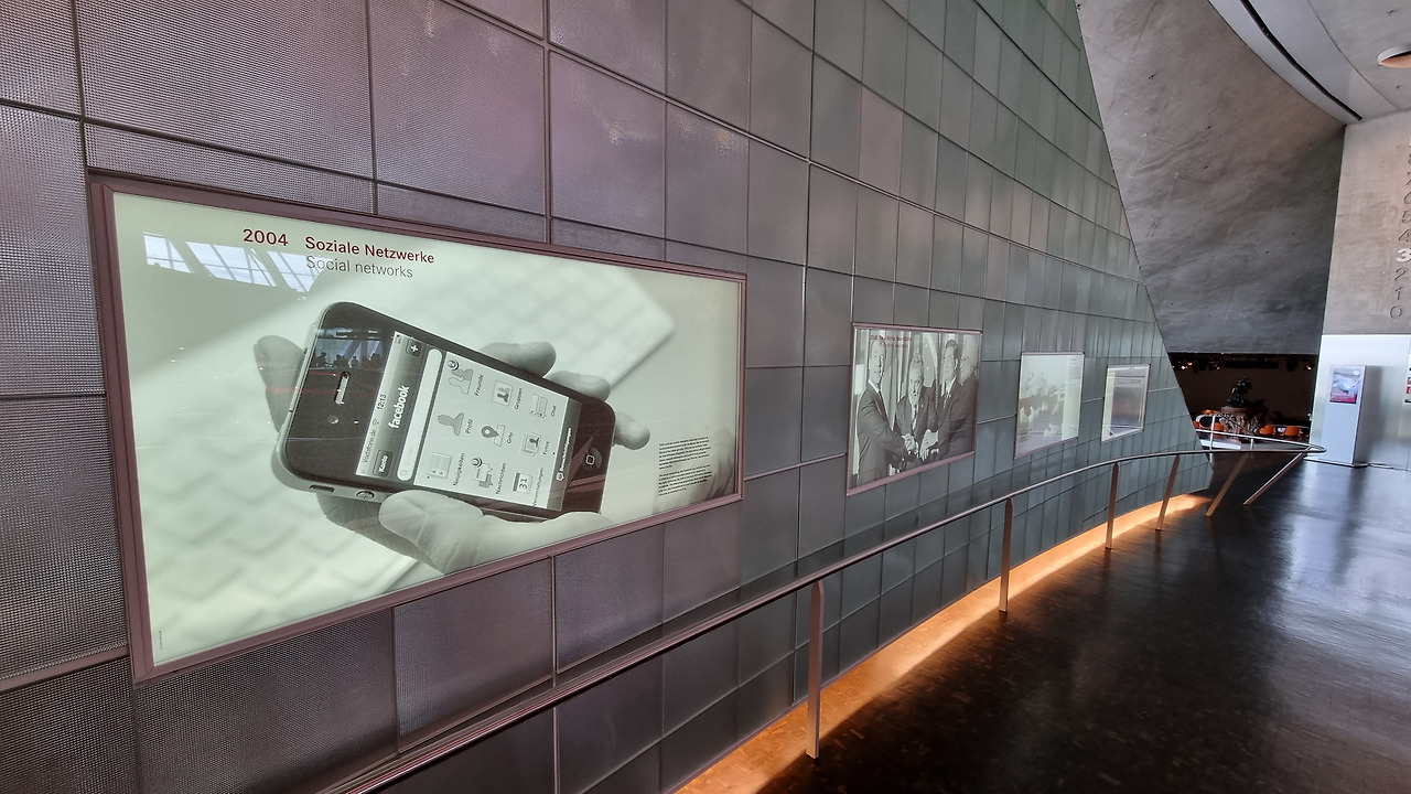 각 층으로 내려가는 공간마다 역사적인 사건과 회사의 기록들을 사진, 그림, 책자 등의 형태로 볼 수 있게 전시하여 마치 벤츠가 세계의 역사적인 기록들의 "one of them"임을 자연스럽게 노출시키는 전략 역시 박물관 전 층을 관통하는 하나의 큰 장치임을 일반 관람객은 눈치채기 어렵다.