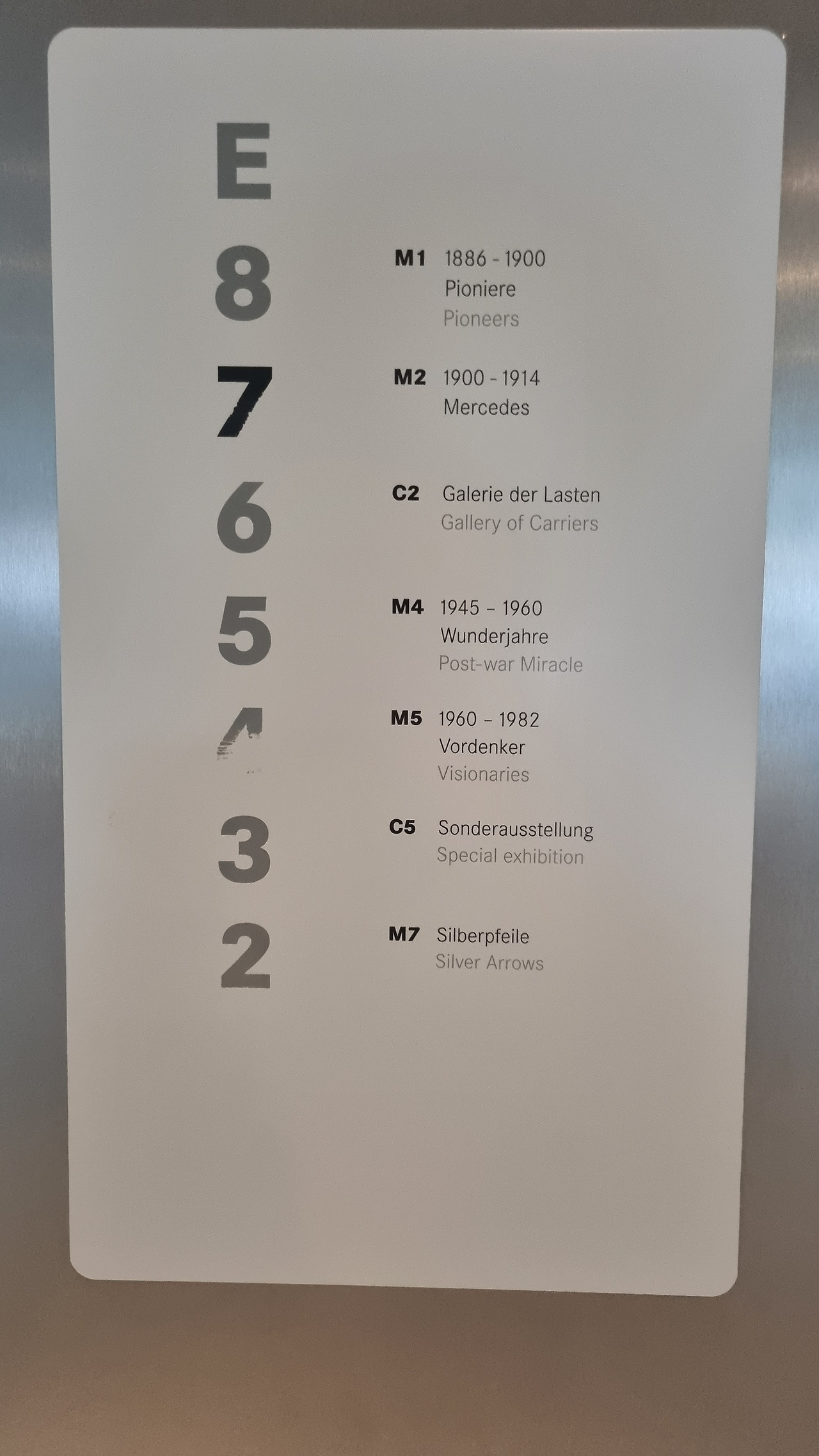 1800년대부터 1900년대 초반, 자동차와 메르세데스의 시작과 다양한 종류의 차량들, 1945년에서 60년까지 전쟁 후의 기적, 80년 초반까지 메르세데스의 부흥과 현대적인 자동차들의 등장, 그리고 다양한 시도와 도전까지 벤츠의 130년 역사를 약 3시간의 스토리로 밀도 있게 압축해 놓은 곳임을 엘리베이터 안내에서 읽을 수 있다.