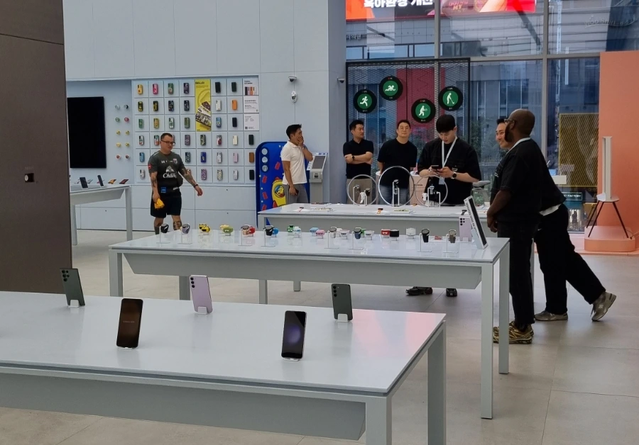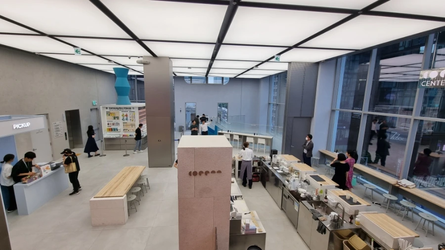 "삼성 강남"은 강남대로 중심에 지하 1층부터 지상 5층까지 총 6개 층, 약 2000㎡ 규모로 구성된 대규모 플래그십 스토어다. 공간에 진입하면 입구부터 안내직원들이 "엘리베이터를 타고 4층으로 올라가서 천천히 관람하면서 1층으로 내려오면 된다"라고 친절하게 설명해 준다.