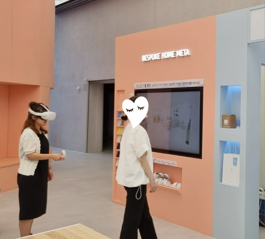 바로 옆 "비스포크 홈메타"부스에서는 VR을 통해 삼성 TV와 생활가전제품을 가상으로 체험해 볼 수 있는 3D가상주택을 만들어 놓았지만 역시나 체험이 쉽지는 않았다. VR이나 AR의 경우 반복되는 기술적 에러와 체험 시 익숙하지 않은 조종은 3D체험이 지속적으로 발전하지 못하는 큰 단점이다. 그래서 나는 대중들이 참여하는 체험형 공간에 3D 도입을 웬만해서는 반대한다. 많은 이가 누리기도 어렵고 너무 많은 기술적 에러가 발생한다.