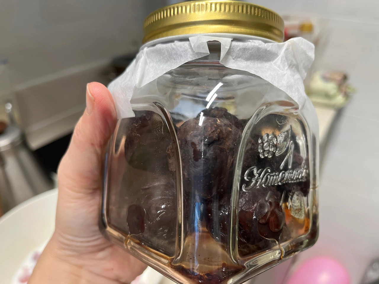 몇 해 전 만들어 두었던 밤조림을 잘게 잘라 넣으니