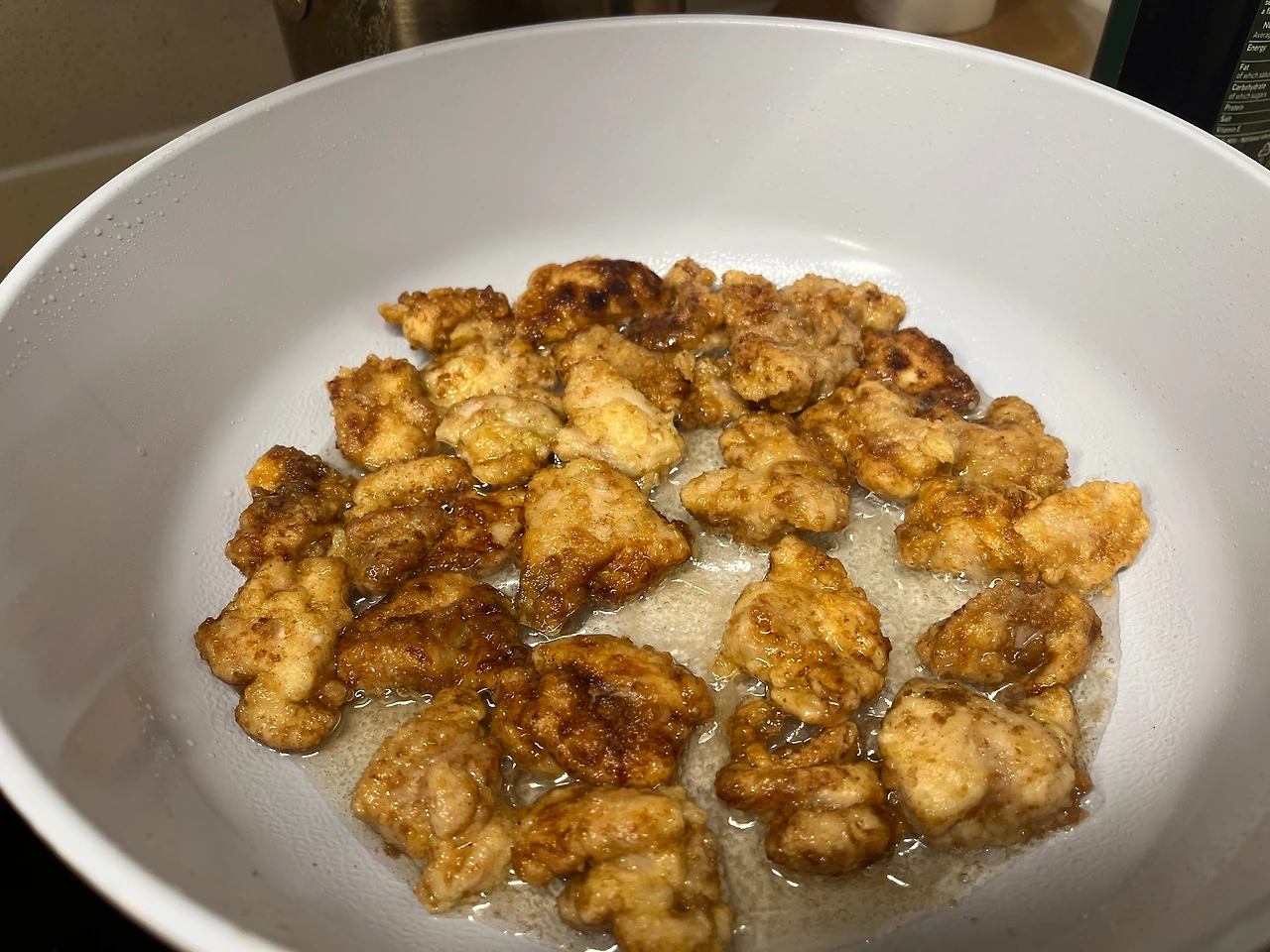 기름에 천천히 튀겼다.