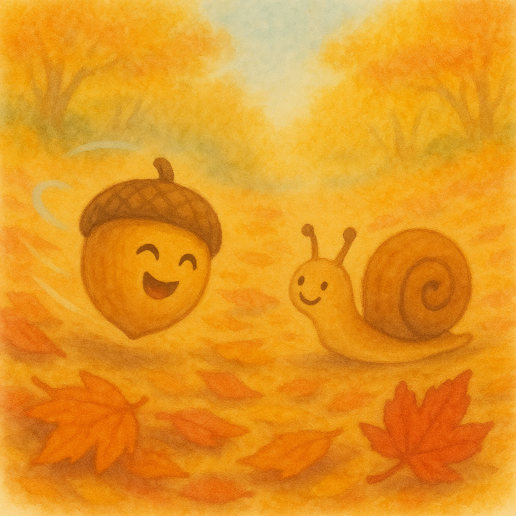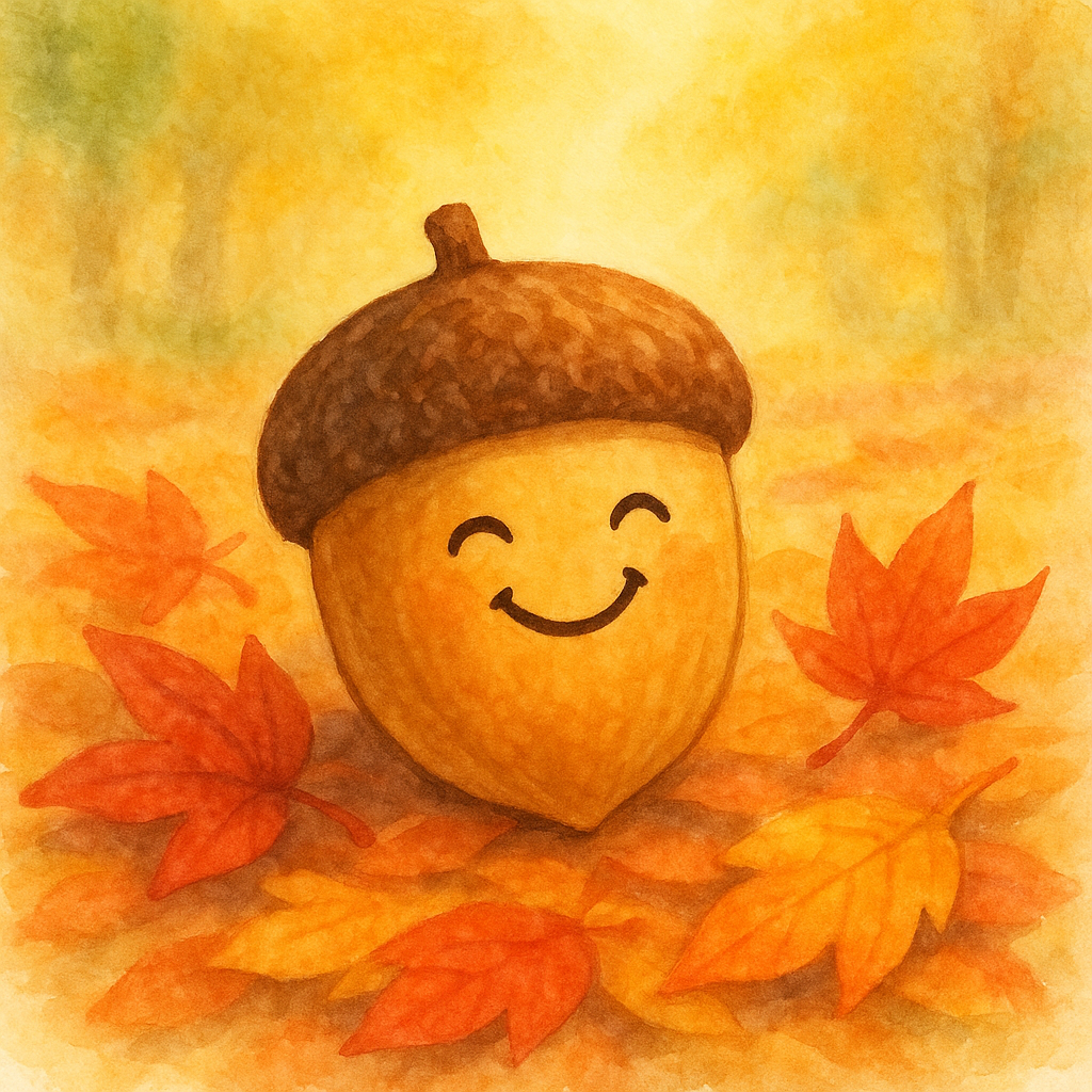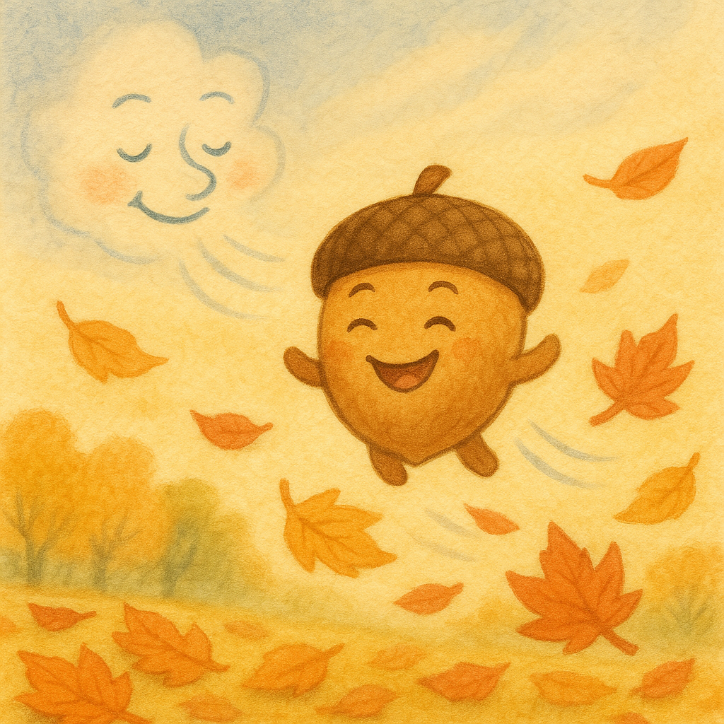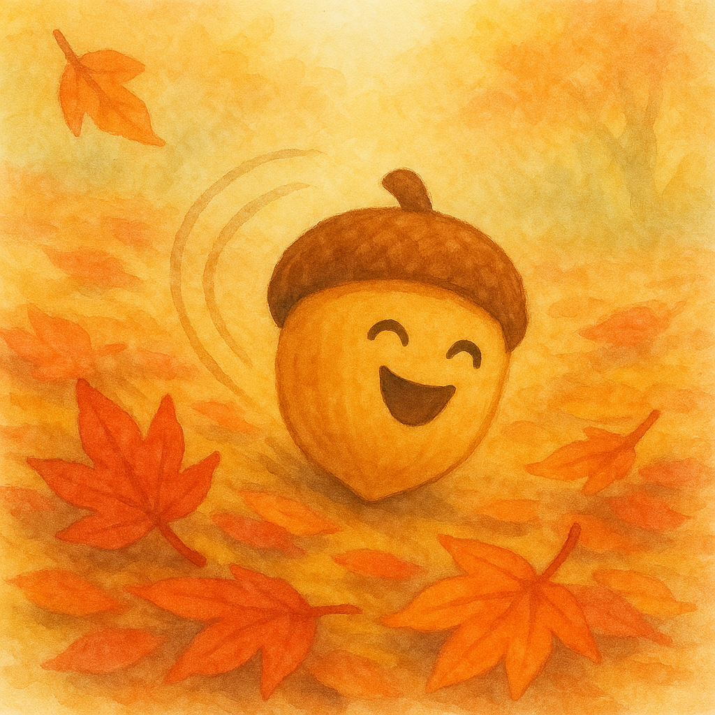 도토리는 낙엽 위를 데굴데굴 굴러보고 싶어요.