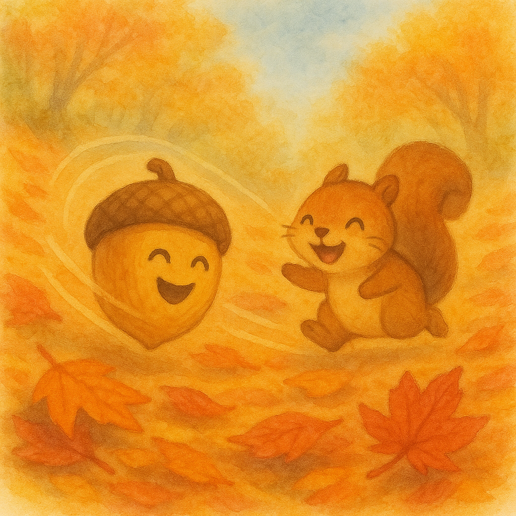 다람쥐도 도토리와 함께 낙엽 위를 굴러요.