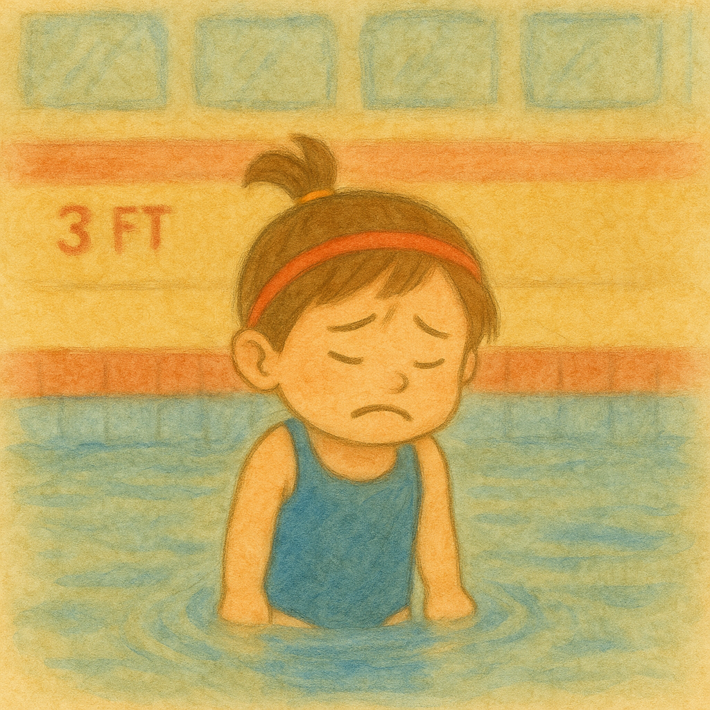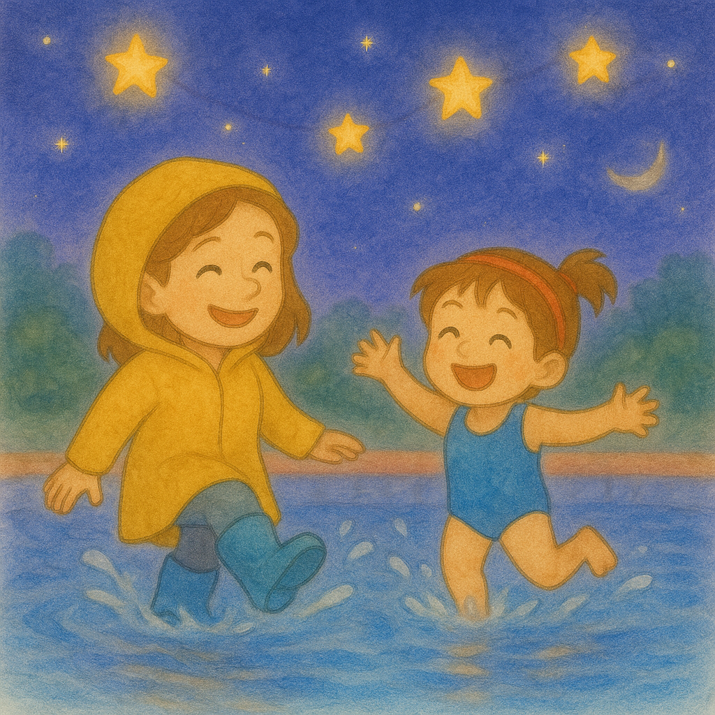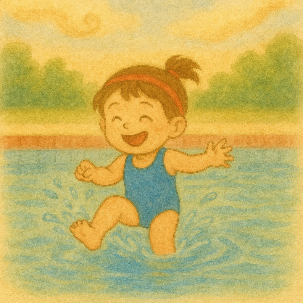 엄마는 첨벙파티, 서하는 풀파티를 하고 있어요.