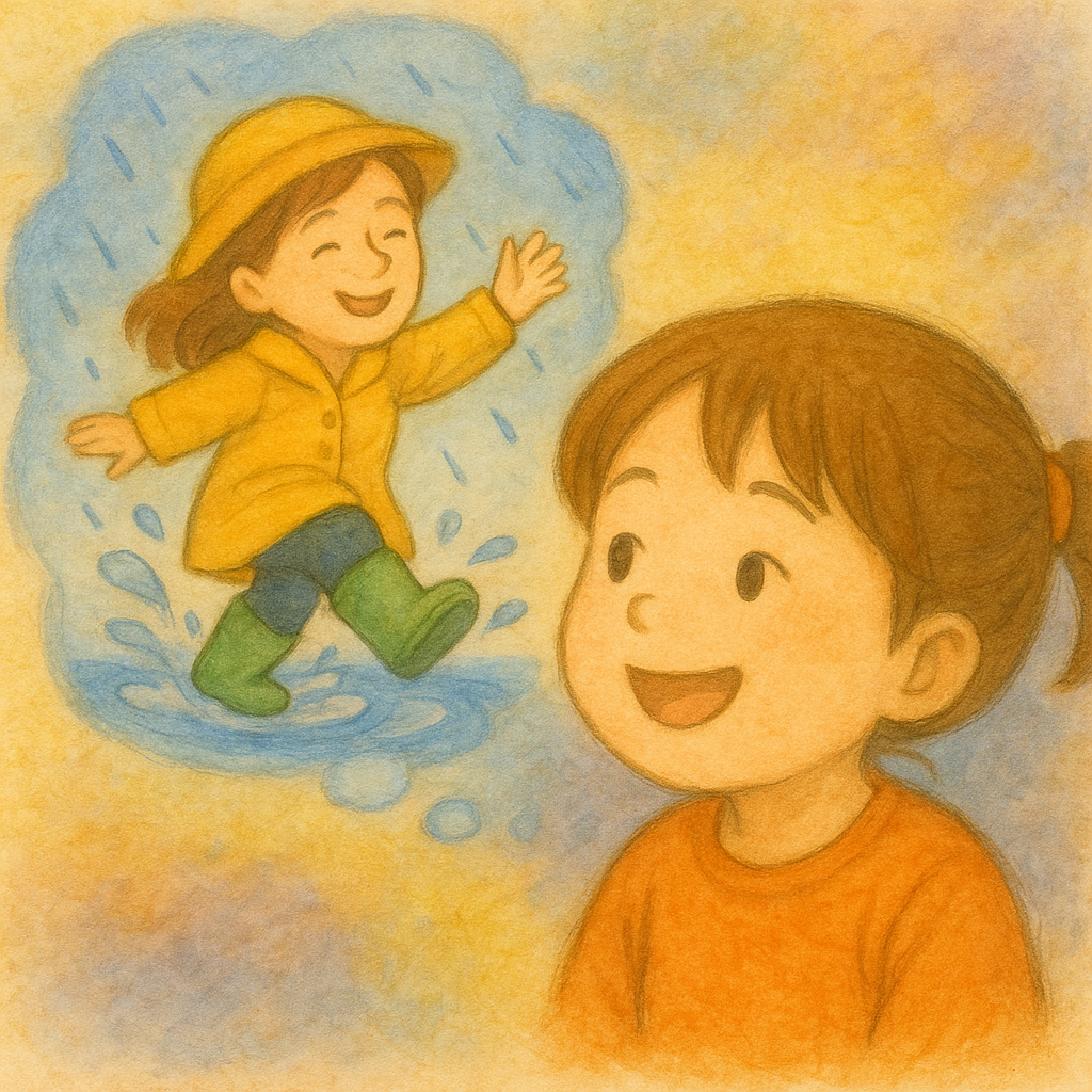 서하는 엄마가 첨벙거리는 모습을 상상하며 웃어요.