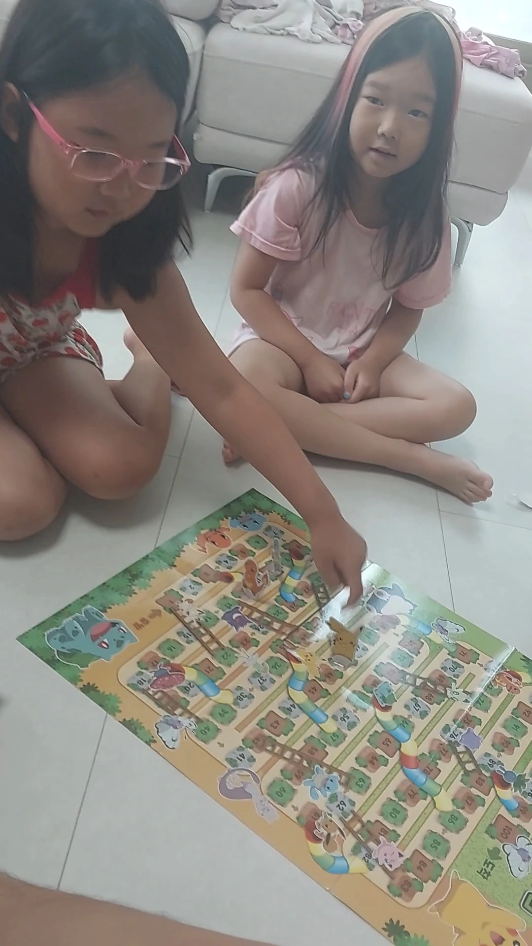 아이들은 어제 재미있게 했다며, ‘포켓몬 사다리 보드게임’을 가져온다.