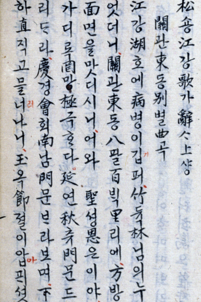 조용하구나 이 경포의 기상이여, 넓고 아득하구나 저 동해의 경계여,