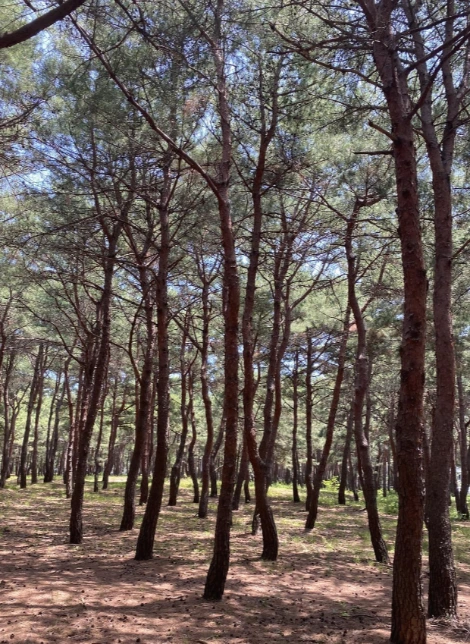 안목해변에서 북쪽으로 한 1.5킬로미터 정도 걸으면 송정해변이 나온다. 내가 가장 좋아하는 해변이다. 주위에 상업 시설이 별로 없어서 더 해변 본연의 분위기를 느낄 수 있다. 군경계 철조망이 철거된 지가 약 3년밖에 되지 않아서 그렇다는데, 앞으로는 이쪽에 카페니 숙박 시설이니 많이 들어서지 않을까. 그냥 내버려뒀으면 좋겠는데. 송정해변은 키가 큰 소나무들이 해변을 둘러싸고 있어, 이 안에서 돗자리를 펴고 누우면 마치 수목원에 온 것 같은 느낌이다. 물론 파도소리가 이곳이 해변의 일부라는 걸 계속 깨우쳐주긴 하지만. 캠퍼들이 좋아하는 캠핑장소이기도 하다.