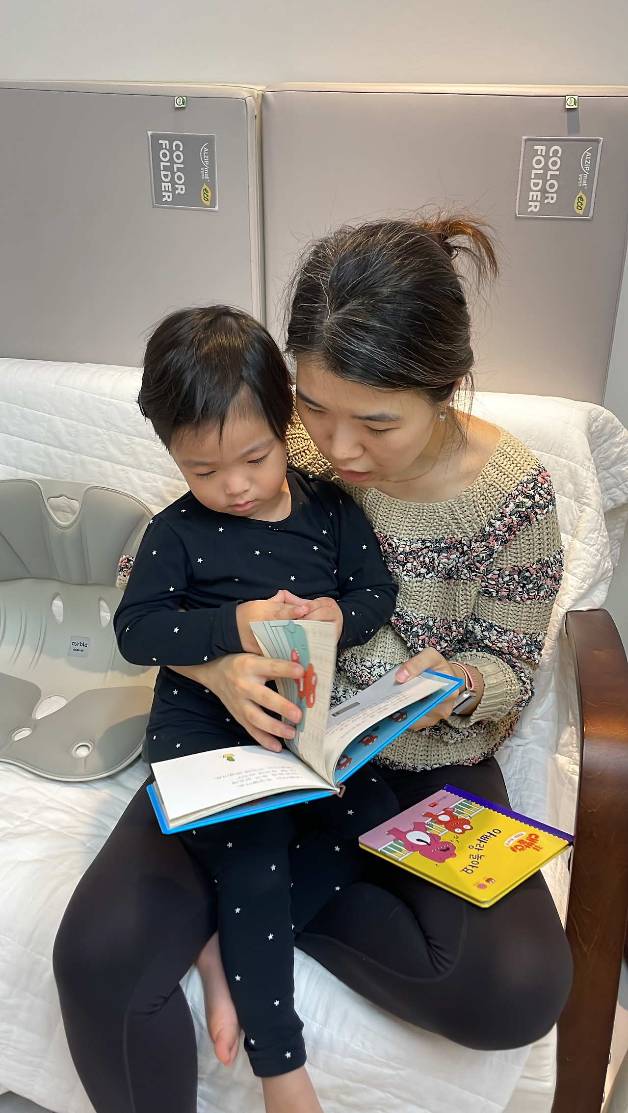 저 어린 아기가 뭘 알고 책을 보기는 하는 것인가 그냥 엄마가 애기를 데리고 잘도 노네 하는 생각을 할 수도 있다.