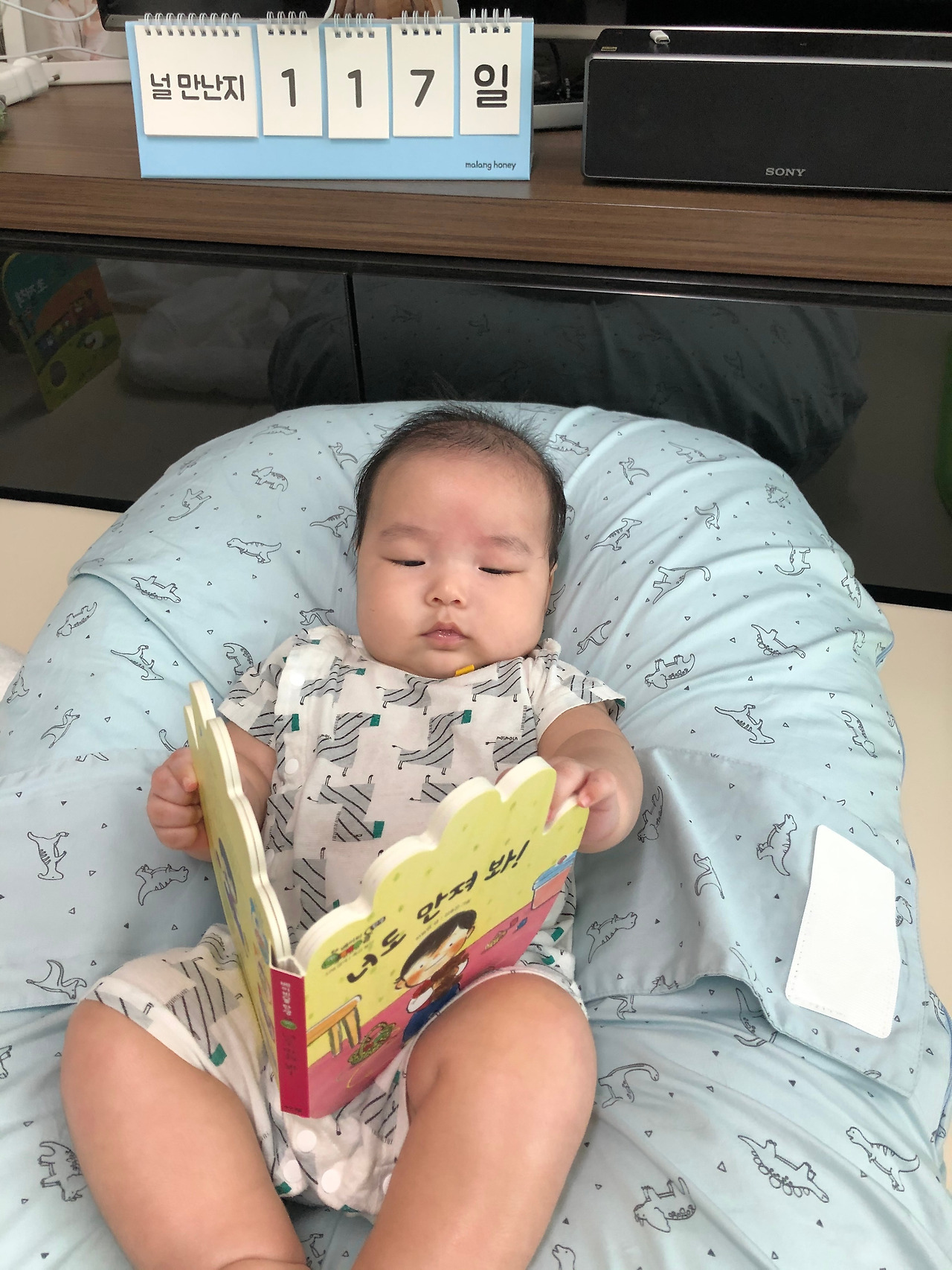나름 범보의자에 앉아 책을 보는 모습이 책읽는 모습 같아 보인다. (설마 엄마 눈에만 ..ㅎㅎ)