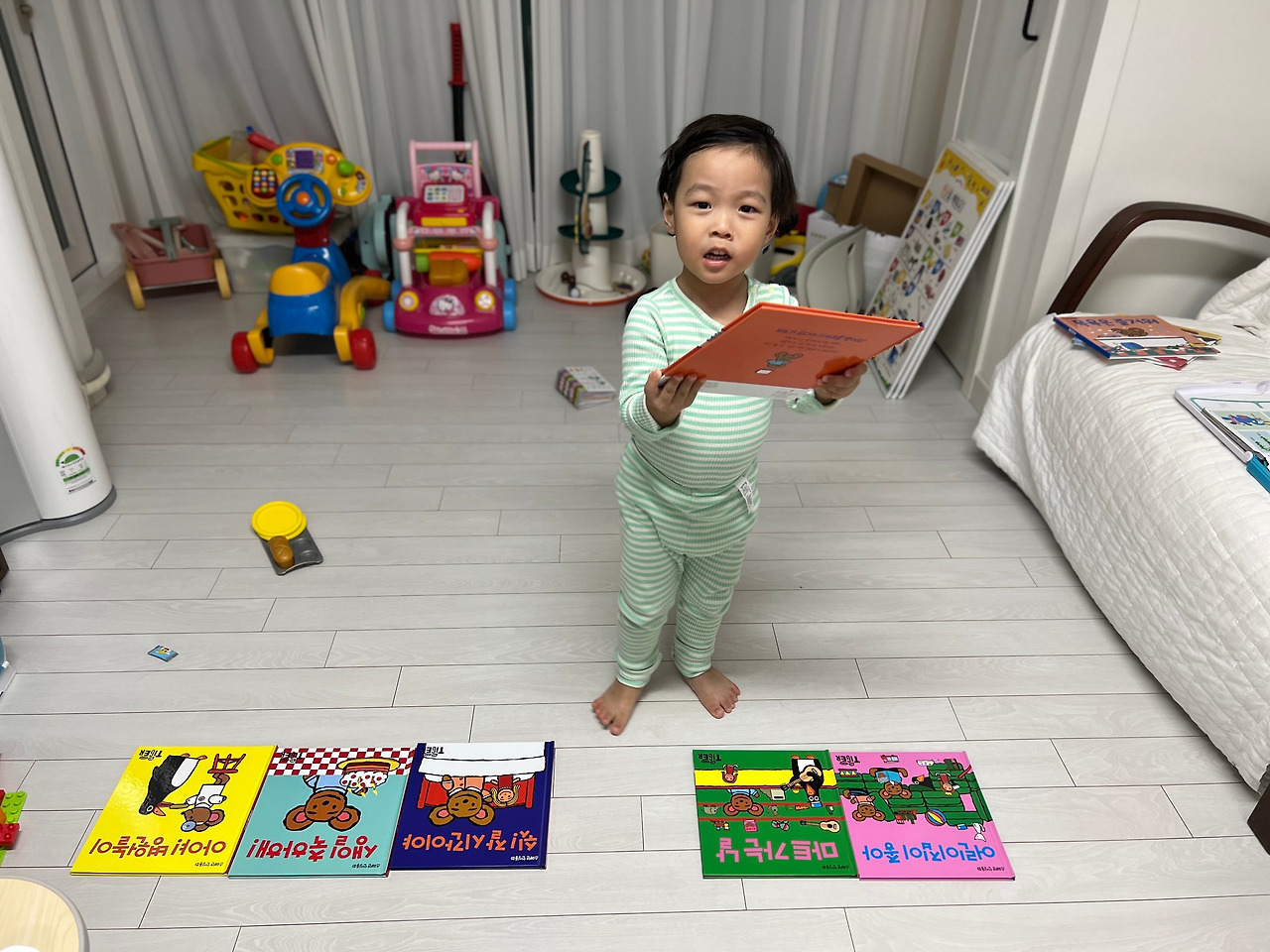 책이 짧아서 좋은 점은 조금만 읽어도 많이 읽어준 느낌이 든다. 10분 정도 열심히만 읽어도 10권은 거뜬하다!!