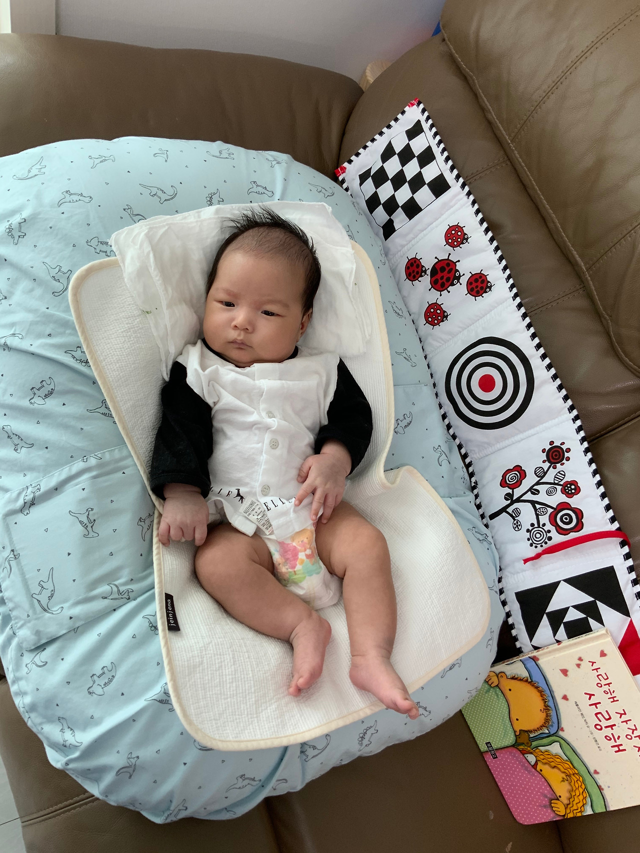 병원과 조리원에서 약 3주간의 시간을 보내고 집으로 입성한 우리 집 상전의 첫 독서는 초점책이다.
