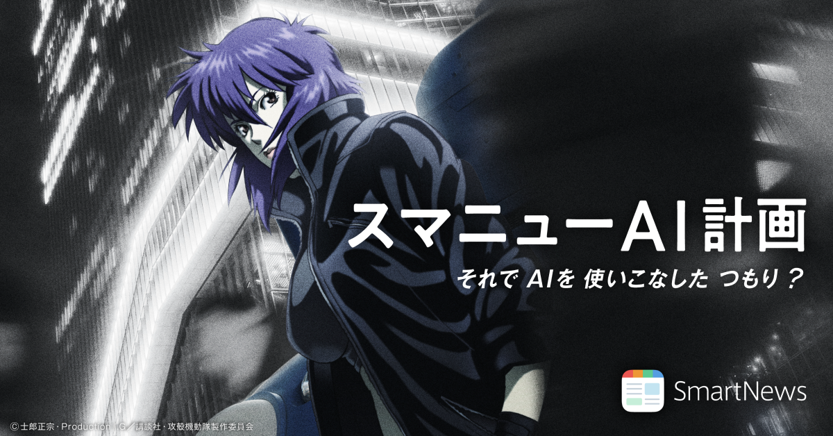 광고 속에는 『공각기동대 S.A.C.』의 주인공 쿠사나기 소령이 2026년의 도쿄 토라노몬 거리에 내려앉는 모습이 담겨 있었습니다. 광고주는 일본의 대표 뉴스 앱인 스마트뉴스(SmartNews)였습니다. 같은 날 시작된 '스마뉴 AI 계획(スマニュー AI計画)'이라는 캠페인의 첫 신호탄이었죠.