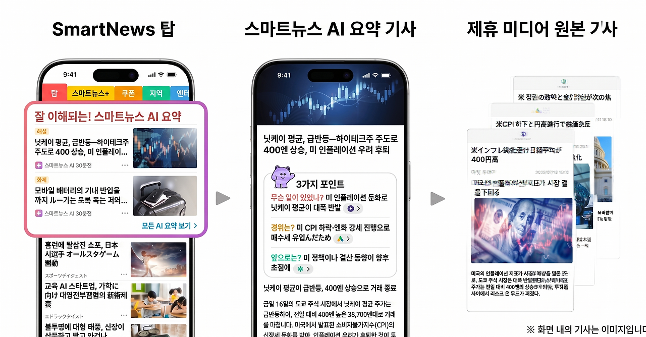 스마트뉴스는 캠페인보다 9개월 앞선 2025년 7월에 '스마뉴 AI 요약'이라는 기능을 먼저 출시해 두었습니다.