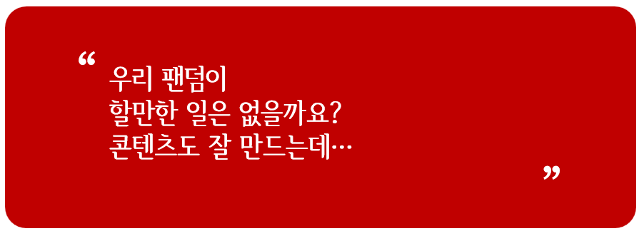 우리 팬덤이 할만한 일은 없을까요? 콘텐츠도 잘 만드는데...
