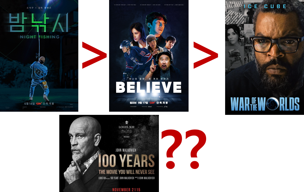 불행히도 전 오늘 소개드린 <100 YEARS>를 평가할 수가 없습니다. 대신 언급한 브랜드 필름을 평가한다면 뭐 나름 인디영화의 재미를 살린 <밤낚시>가 '빌리브'라는 메시지가 그렇게 명확하게 와닿지 않았던 <빌리브>보다는 낫습니다. 그리고 <우주 전쟁>은 정말 아마존 합니다. (저만 당할 수 없어 <우주 전쟁> 강추드립니다.)