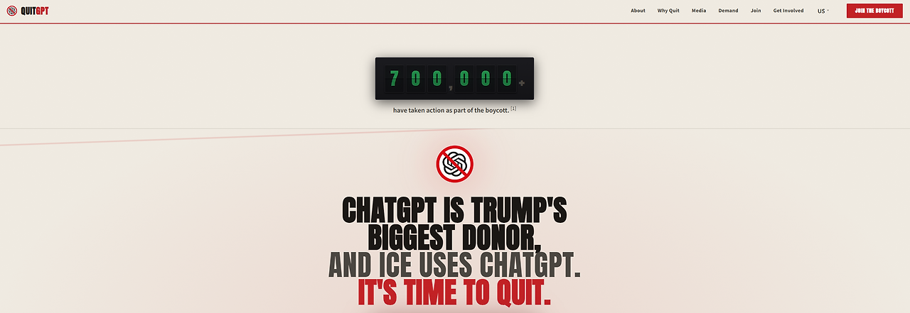 여기에 미국 이민세관집행국 ICE가 이민자 취업 심사에 ChatGPT 기반 도구를 활용하고 있다는 보도까지 겹치면서 불씨는 순식간에 번졌습니다. OpenAI가 AI 규제를 막기 위해 5000만 달러를 로비에 쏟아붓고 있다는 소식도 더해졌습니다. 비영리 법인으로 출발해 '인류를 위한 AI'를 표방하던 기업이, 권력과 가장 가까운 자리에서 가장 빠르게 돈을 불리는 회사가 됐다는 배신감이 깔렸습니다.