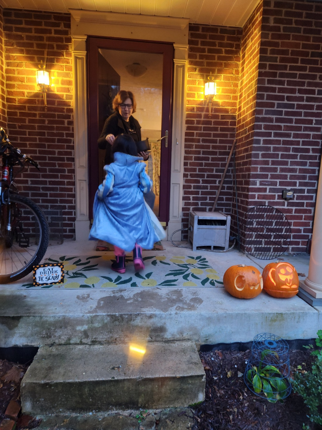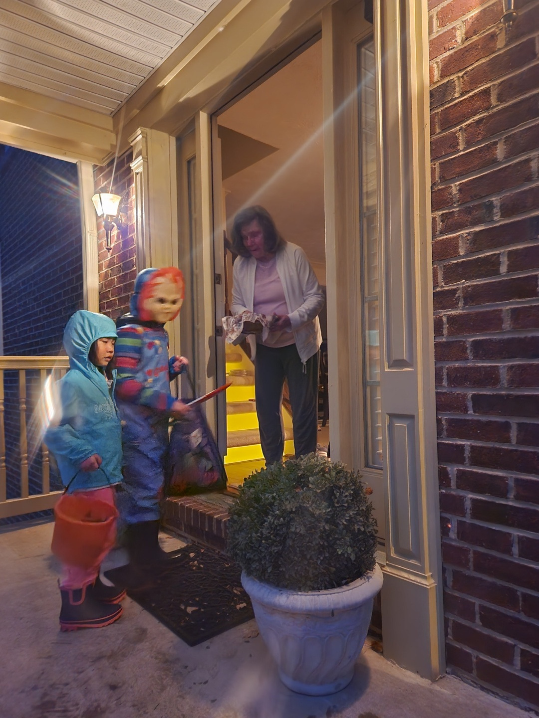 개인적으로 이것이 가장 하이라이트가 아닌가 싶다. 핼러윈의 날, 자녀를 둔 부모가 반드시 치러야 할 숙제이기도 하다. 자녀가 집집마다 방문해 문을 노크한 후 "Trick or Treat"(사탕 주면 안 괴롭힐게)를 외칩니다. 코스튬을 입은 집주인이 나와 캔디를 주면 "Happy Halloween"를 외치며 감사를 표현하지요^^ 부모는 자녀의 안전과 방문 에티켓을 챙기기 위해 반드시 동반해야 해요. 저희도 매년 동네 친구네 가족들과 한데 모여 당일 저녁에 동네 한 바퀴를 돌면 핼러윈의 추억을 함께 쌓아가고 있네요. 이렇게 미국에서의 두 번째 핼로윈을 무사히 마쳤습니다.