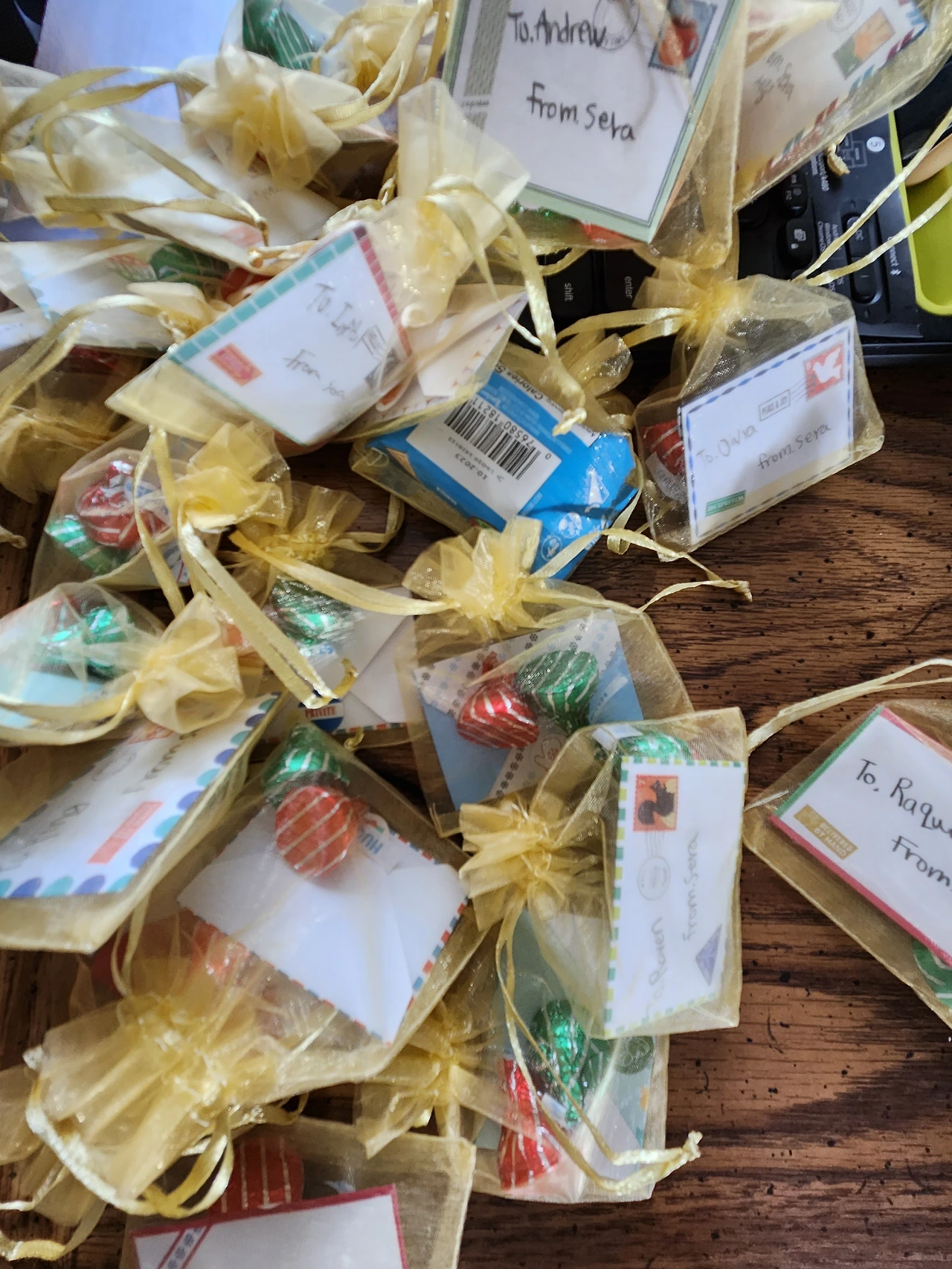 막둥이는 pre.k라 그런지 음식은 안된다는 공지가왔다.아이들 이름 마다 카드를 쓰고 그 안에 작은 선물을 담았다.