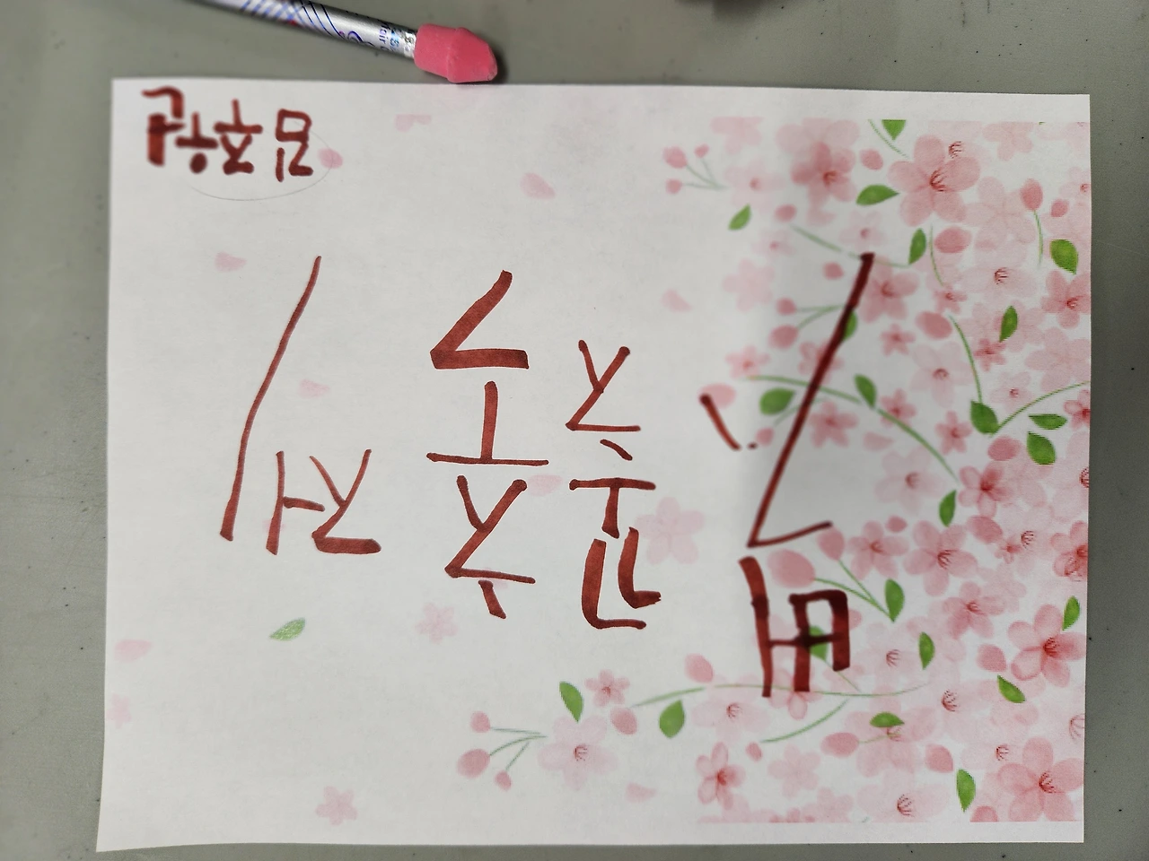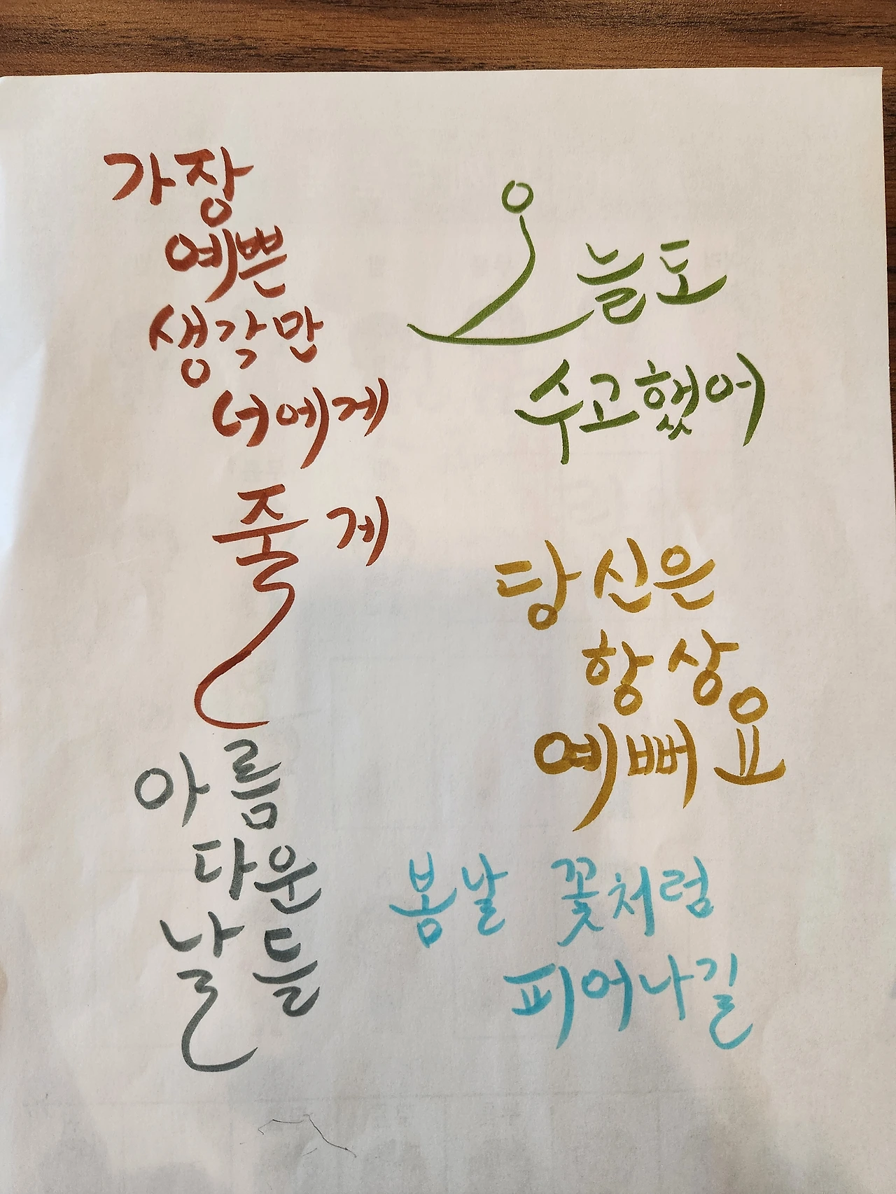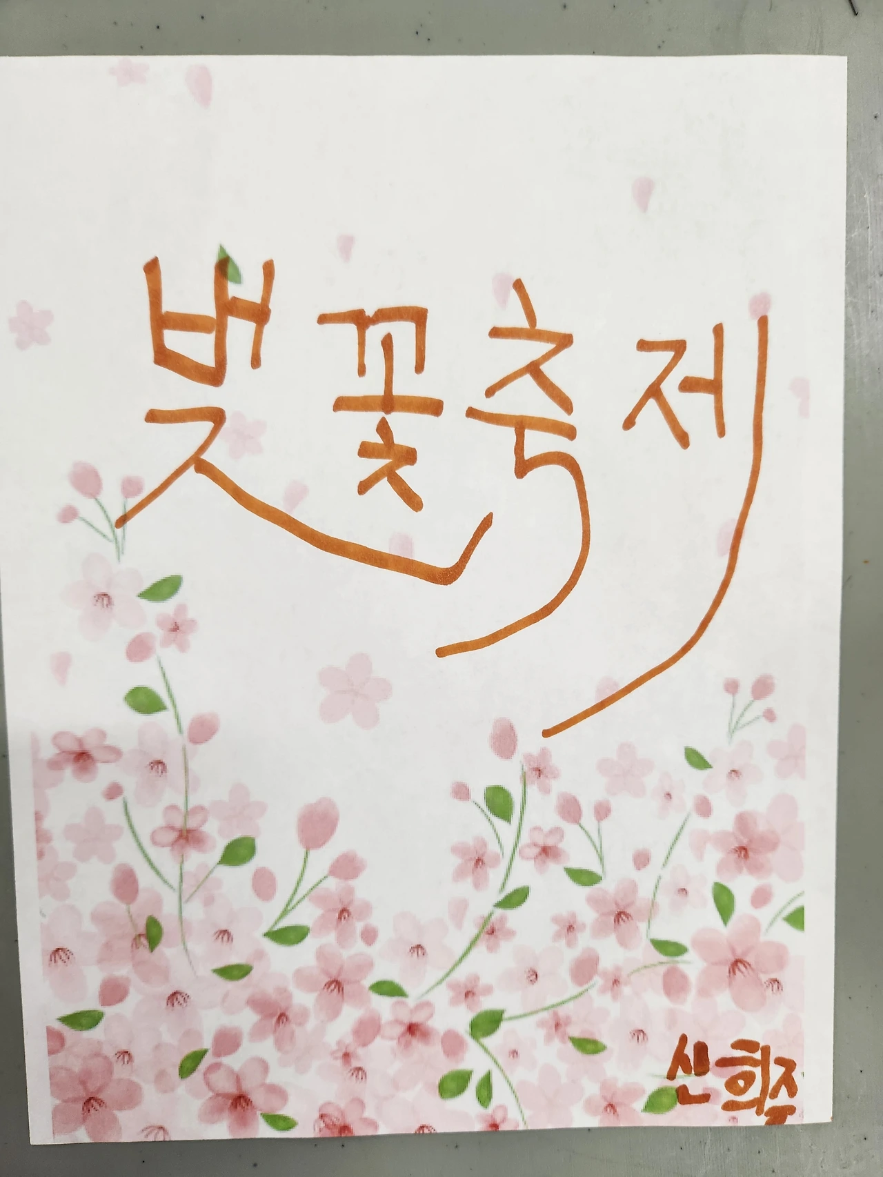 맹지에 연습을 25분 정도하고 벚꽃배경의 종이에 정성스럽게 손글씨를 쓰는 아이들이 보기 좋았다. 새로 들어온 6학년 남자, 여자 학생들을 위한 집중케어반이 개설되었다. 우리 한글학교는 어린 초급반, 중급반이 많은데, 그 사이에 어정쩡한 아이들이 들어갈 반이 없다.