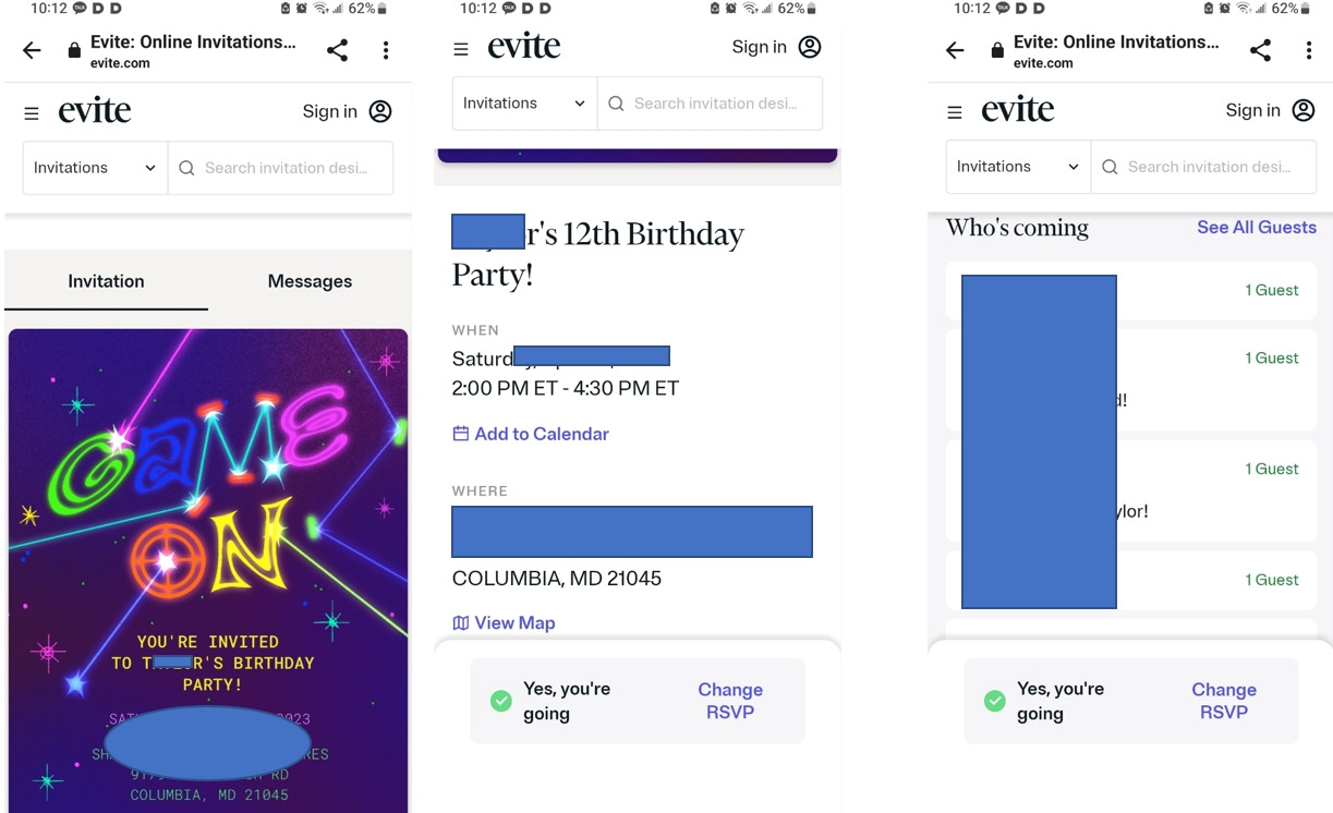 작년에 우리 아이의 생일파티를 해보려면 몇 명의 친구에게만 이야기를 해봤는데, 결국 하나도 오지 않았다. 고민을 해 본결과, 아이들끼리 간다 못 간다를 결정하는 것이 아니고, 그 부모들이 픽업과 드롭을 해줄 수 있느냐가 중요한 것이다. 그래서. evite라는 어플을 사용한다.