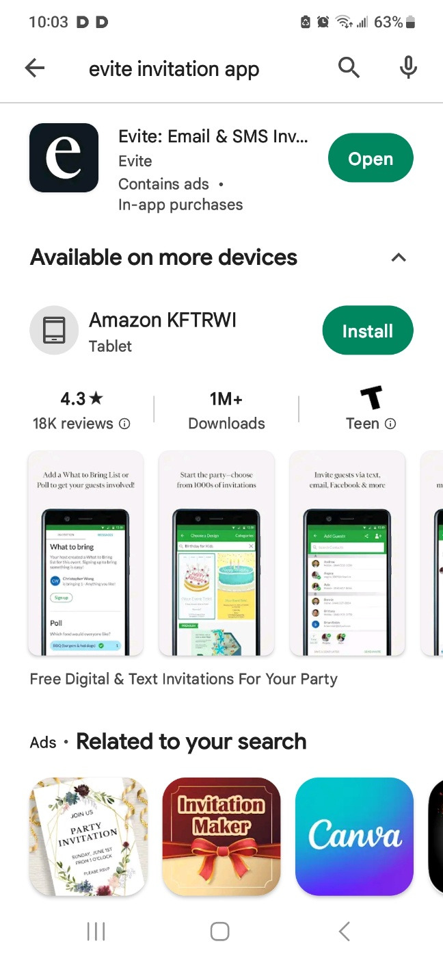 나도 처음에 이런 이메일을 받았을 때 애들 생일잔치에 참 요란하구먼.... 이런 생각을 했었다. 지금은 완전히 생각이 바뀌어서 이렇게 해야지 정확한 인원이 모이겠구나. 정확한 장소를 공지하고 시작 시간과 끝나는 시간을 한눈에 알 수 있도록 하는 작업을 할 수 있게 도와주는 것이 evite이다. 아래의 어플을 설치하면 된다.