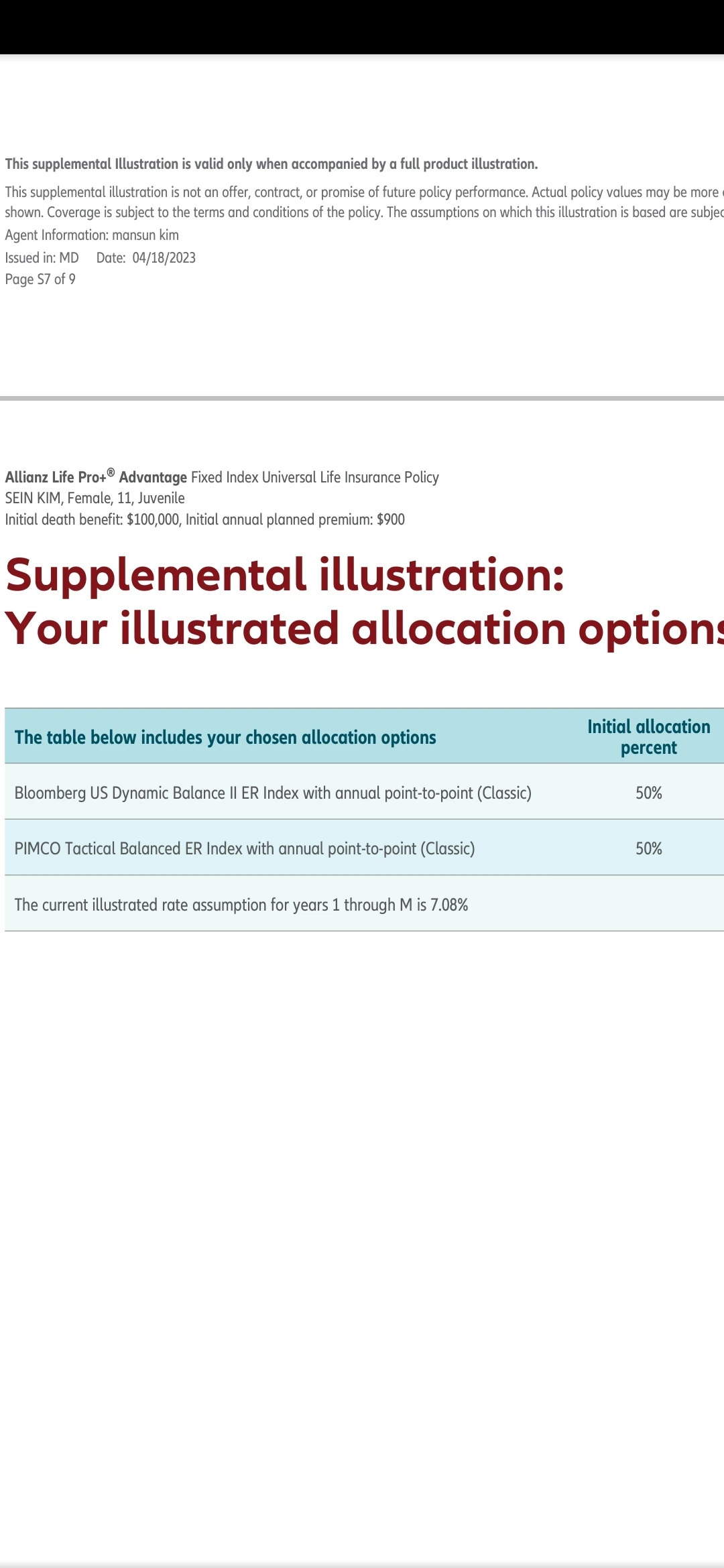 1년에 878.8불을 최소한 넣으란다. 이런 경우 lapse가 되지 않도록 조금 더 넣어주면 좋다. 자녀 3명에 대해 다 들어주지는 못하고 만 12세가 되면 순차적으로 들어주려 한다. 아직 12세 생일이 도래하지 않아서 만 11세와 만 17세로 견적을 뽑아보니 만 17세에는 더 많은 보험료를 내야 한다. 난 1년에 한 번 900불을 내주기로 결정했다. 십 년만 넣어주고 나머지 20년은 네가 알아서 해라.