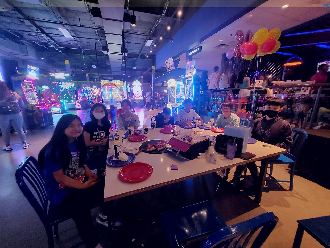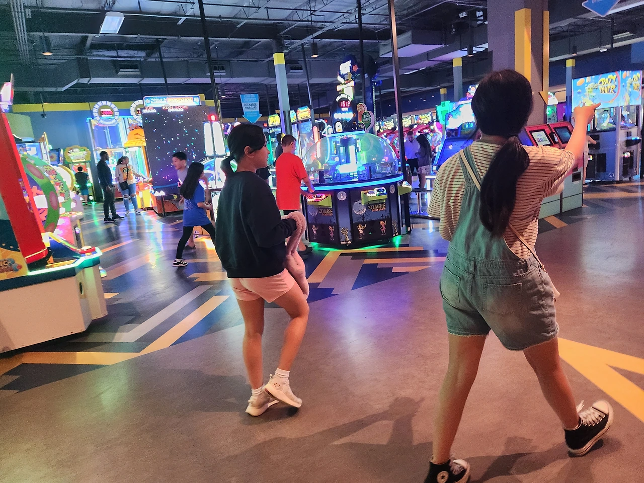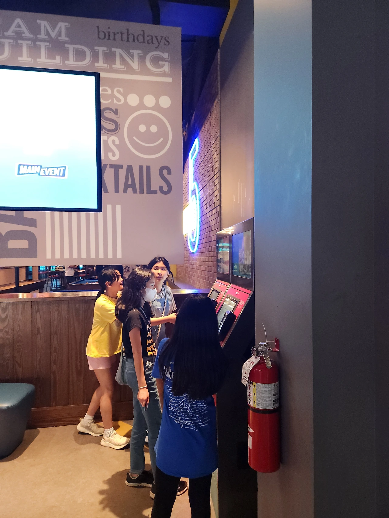 보통 특정장소를 빌려서 초대하고, 피자나 음료는 곳곳에서 시키고, 부모는 케이크이나 사들고 가면 되는듯하다. 오늘 간 곳은 main event라는 곳인데, 총싸움, 볼링 등등 여러 가지 게임을 즐길 수 있는 곳으로, 아이들 개인당 무슨 카드를 받고 그 한도 내에서 점수를 소진해 가며 게임을 즐기는듯했다.