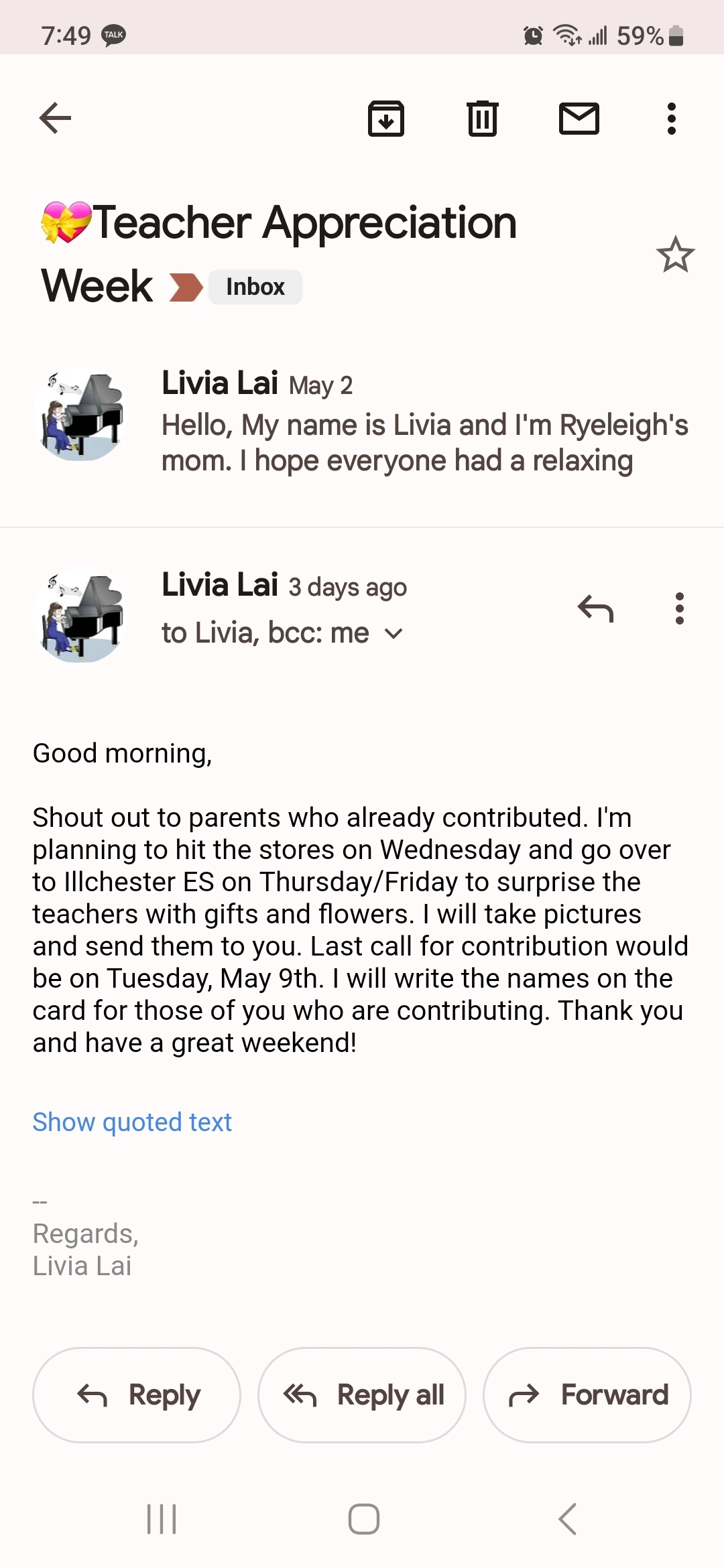 미국은 교실 안에 room mom이라고 학기 초에 한번 지정한다. 하고 싶다는 분이 우선시되므로 나는 못 들은 척 가만히 있는다. 이런 날을 챙기거나, 땡스기빙, 크리스마스, 선생님 생일 등을 챙겨준다. 아래와 같은 메일을 공유한다.