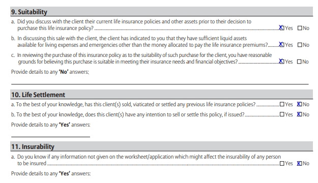 보험을 가입하기 전에 UNDERWRITING 검사를 한다. 피검사도 포함되어 있고 PHYSICAL UNDER, MEDICAL UNDER, FINANCIAL UNDER 등이 있다. 재정적으로, 신체적으로, 의료기록등을 통하여 문제가 없는지 확인하는 절차이다. 재정적인 언더라이팅은 가입자의 연봉대비 얼마나 큰 보험을 들을 수 있는가도 결정된다. 가령 30대는 연봉의 30배 정도의 액면가를 커버할 수 있으나, 50대는 연봉의 10배 정도의 액면가로 가능케 한다. 그 이상이 되면 왜 이렇게 큰 보험이 필요한지 소명을 해야 한다고 한다.
