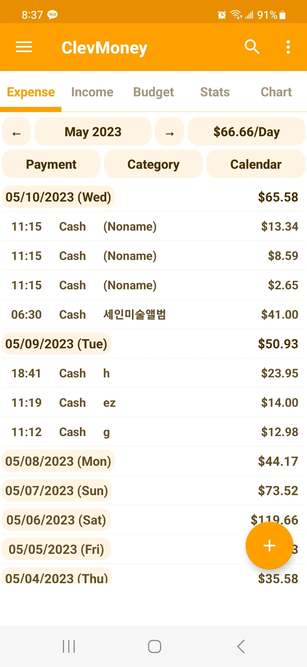 CLEVMONEY-한국의 똑똑가계부란 것이 있는데 그것의 영어버전이다. 매일 사용하는 금액을 적어가는데, 내가 갖고 있는 어떤 신용카드는 삼성페이를 사용할때만 그 내역이 자동으로 입력이 된다. 한달 총 사용액도 알 수 있고, 1일당 얼마를 사용했는지도 알 수 있다. 1일당 60달러 안으로 사용하는 것이 나의 목표이지만 항상 벗어난다.